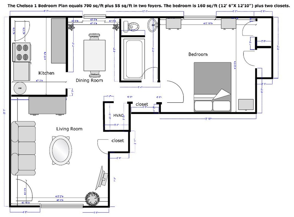 1 Dormitorio, 1 Baño, 750 pies²Galería del Modelo