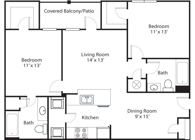 1 Dormitorio, 1 Baño, 815 pies²Disponible AhoraGalería del Modelo