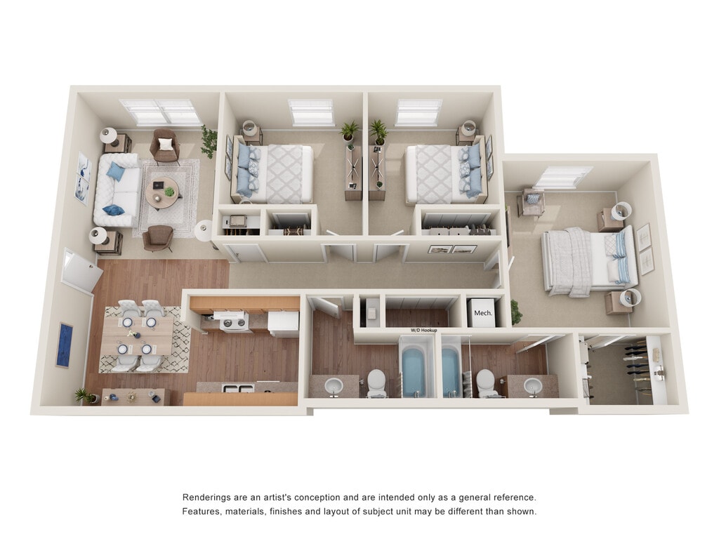 Modelo de apartamento: 3 Bedroom Two Bathroom$1,0503 Dormitorios, 2 Baños, 1155 sq ftDisponible December 15, 2025![]()