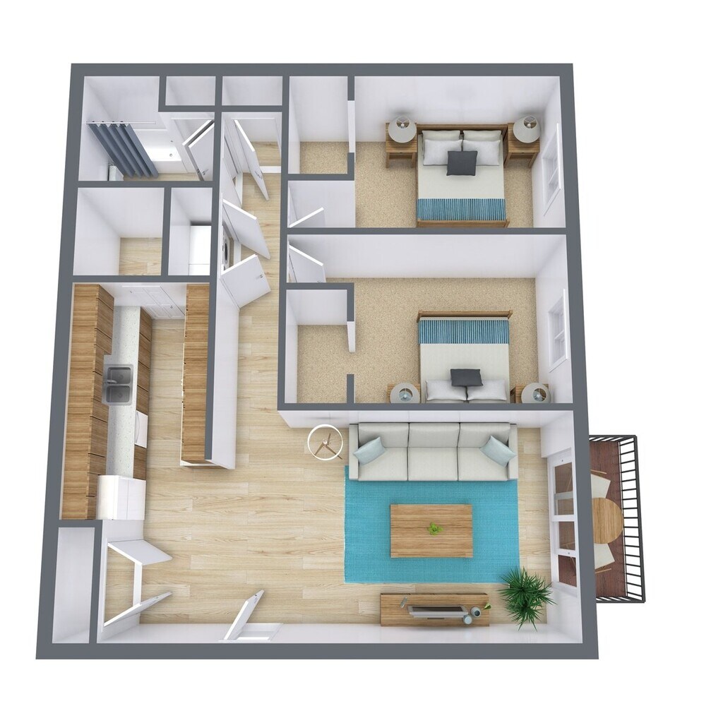 Modelo de apartamento: Two Bedroom 21A2 Dormitorios, 1 Baño, 900 sq ftNo Disponible![]()