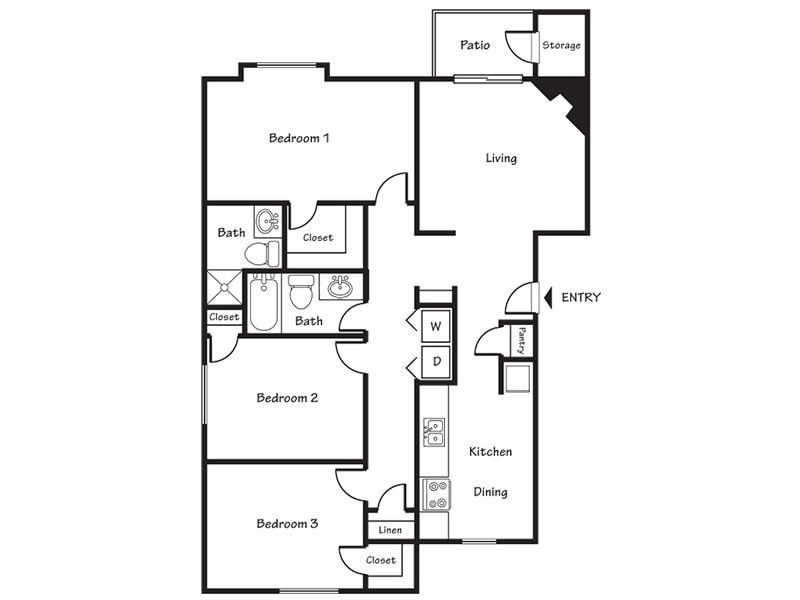 Modelo de apartamento: 3x2 A3 Dormitorios, 2 Baños, 1018-1100 sq ftNo Disponible![]()