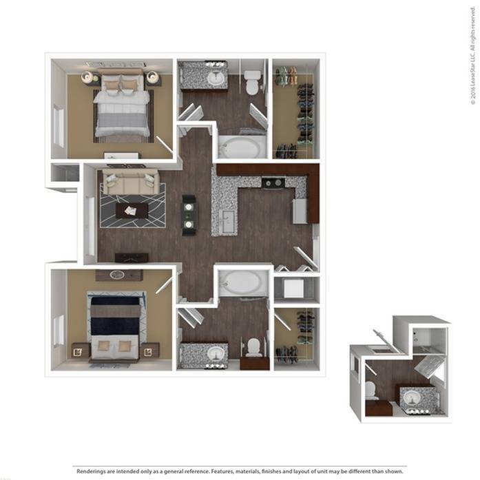 Modelo de apartamento: Reveille2 Dormitorios, 2 Baños, 818 sq ftDisponible Ahora![]()