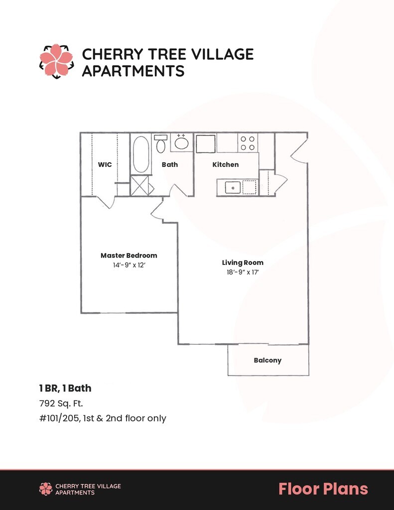 1BR 1BA (A1 #101) - Imagen 7 Unidad de apartamento: 101Modelo de apartamento: 1BR 1BA (A1 #101)$1,4401 Dormitorio, 1 Baño, 792 sq ftDisponible Ahora1BR 1BA (A2 #104)
