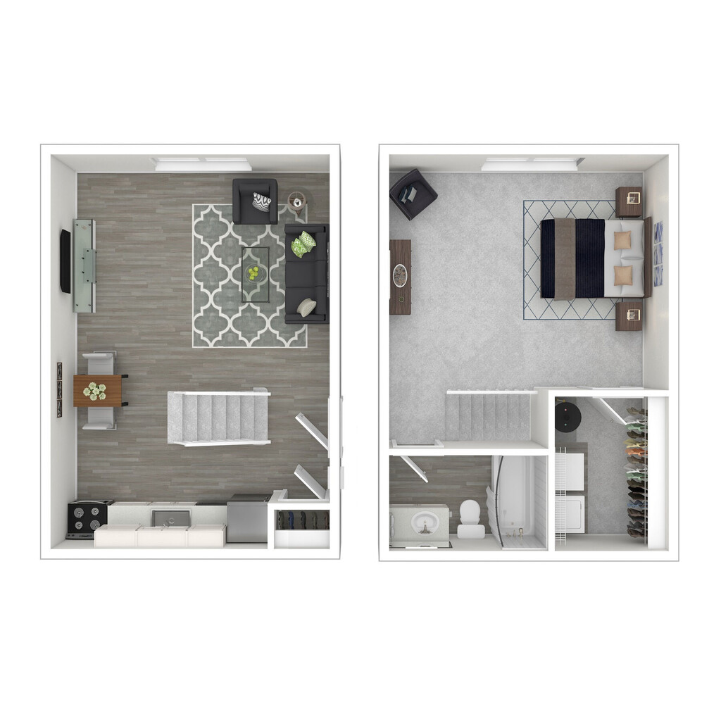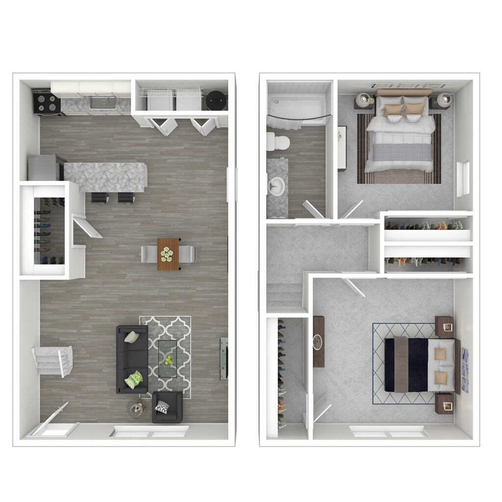 Modelo de apartamento: 1/1 TownhomeDesde $1,1251 Dormitorio, 1 Baño, 700 sq ftDisponible AhoraPlanosFotos![]()