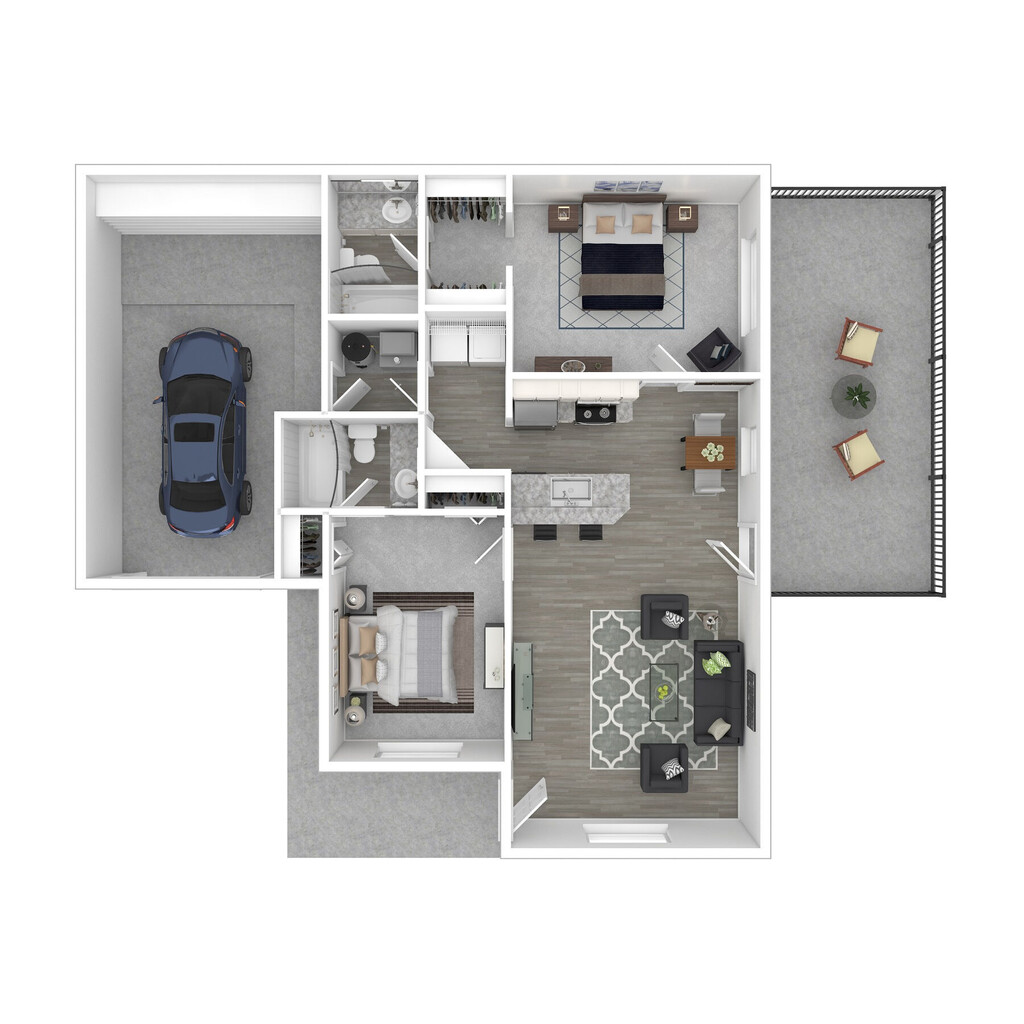 2 Dormitorios, 2 Baños, 1100 pies²Galería del Modelo