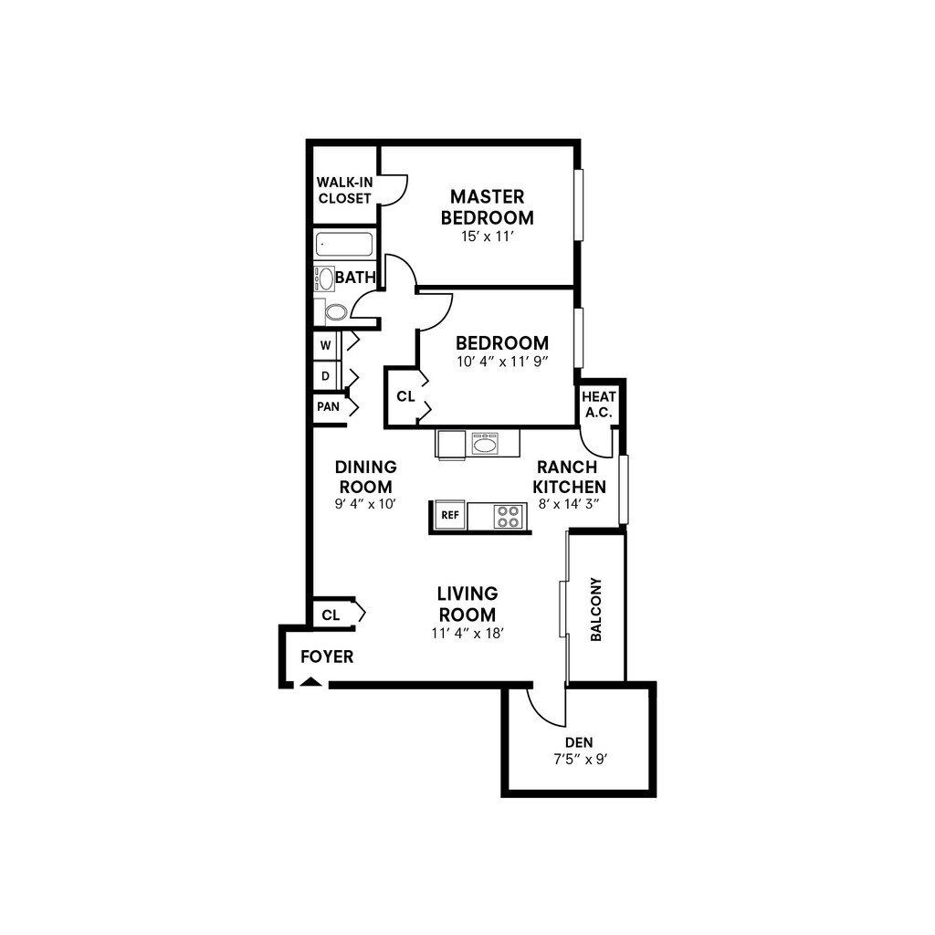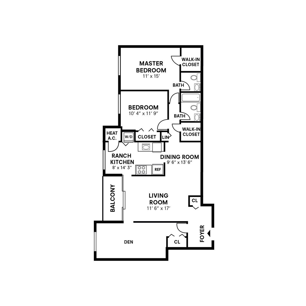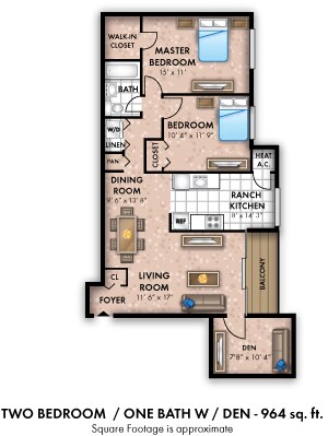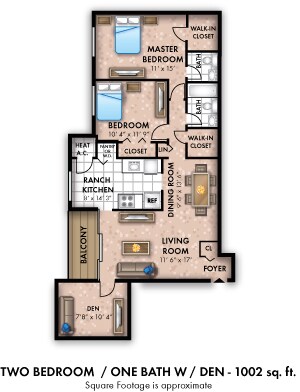 One Bedroom w/ Den - 880 sqft - Plano 2 2 Dormitorios