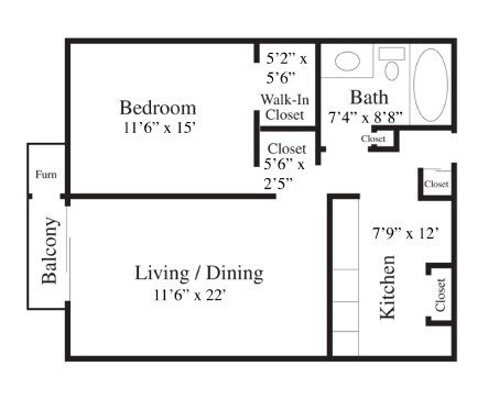 1 Dormitorio, 1 Baño, 750 pies²Disponible Mar 18Galería del Modelo