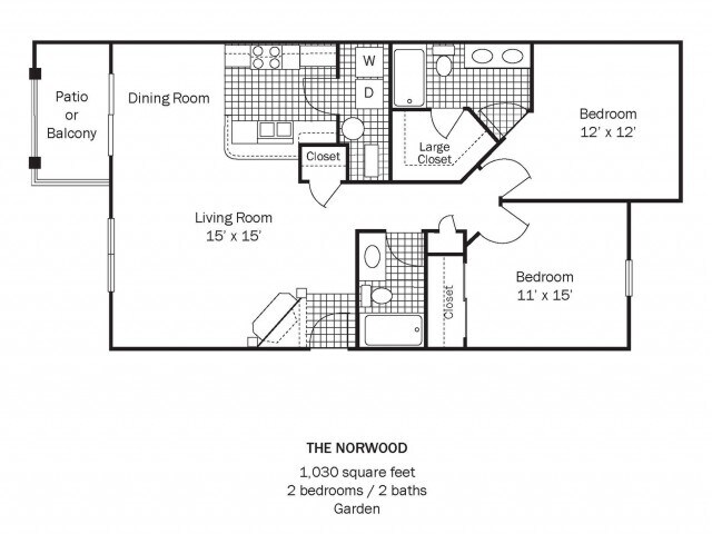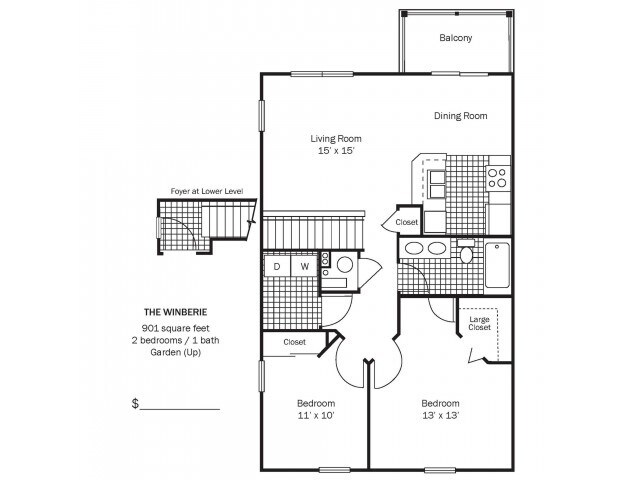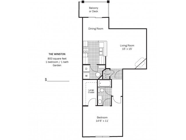 Modelo de apartamento: Winston Down$1,2891 Dormitorio, 1 Baño, 800 sq ftNo Disponible![]()
