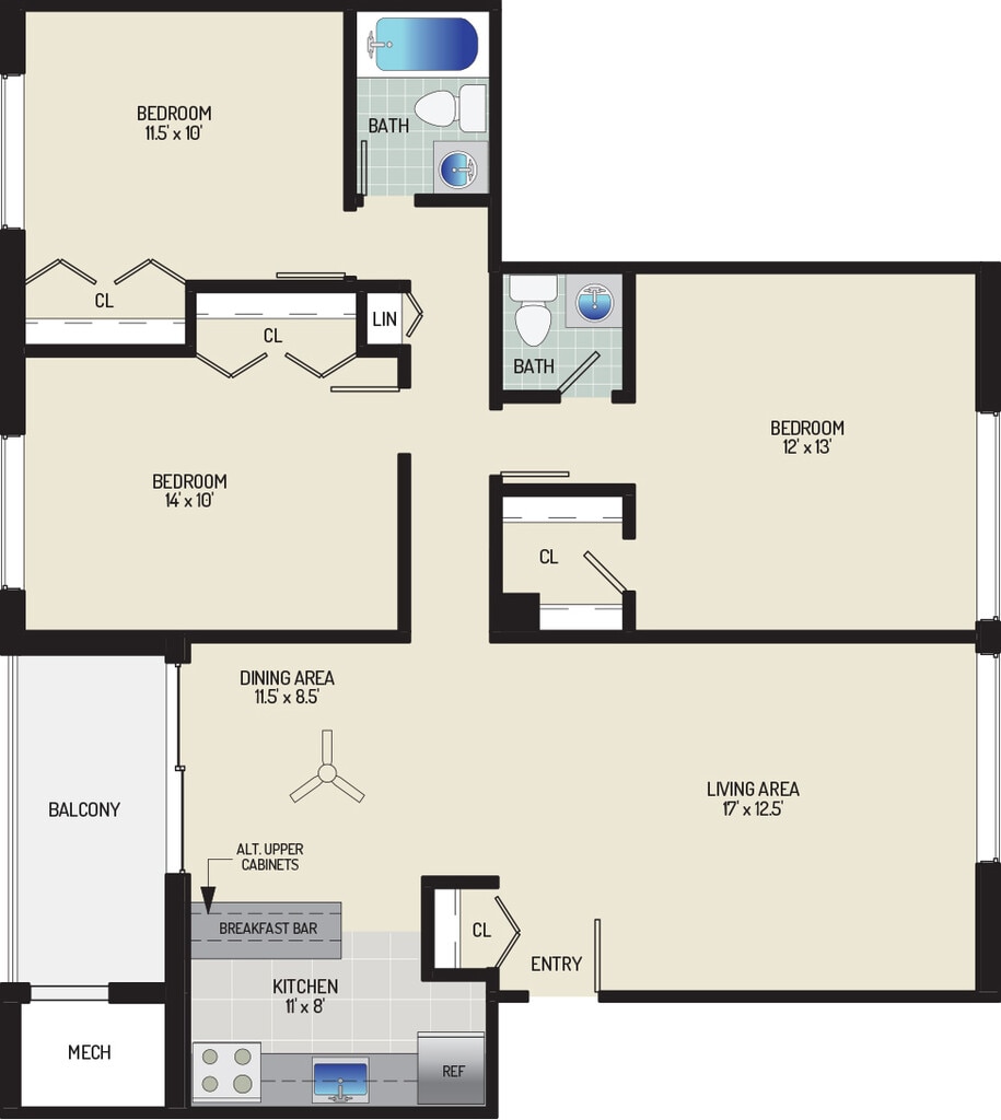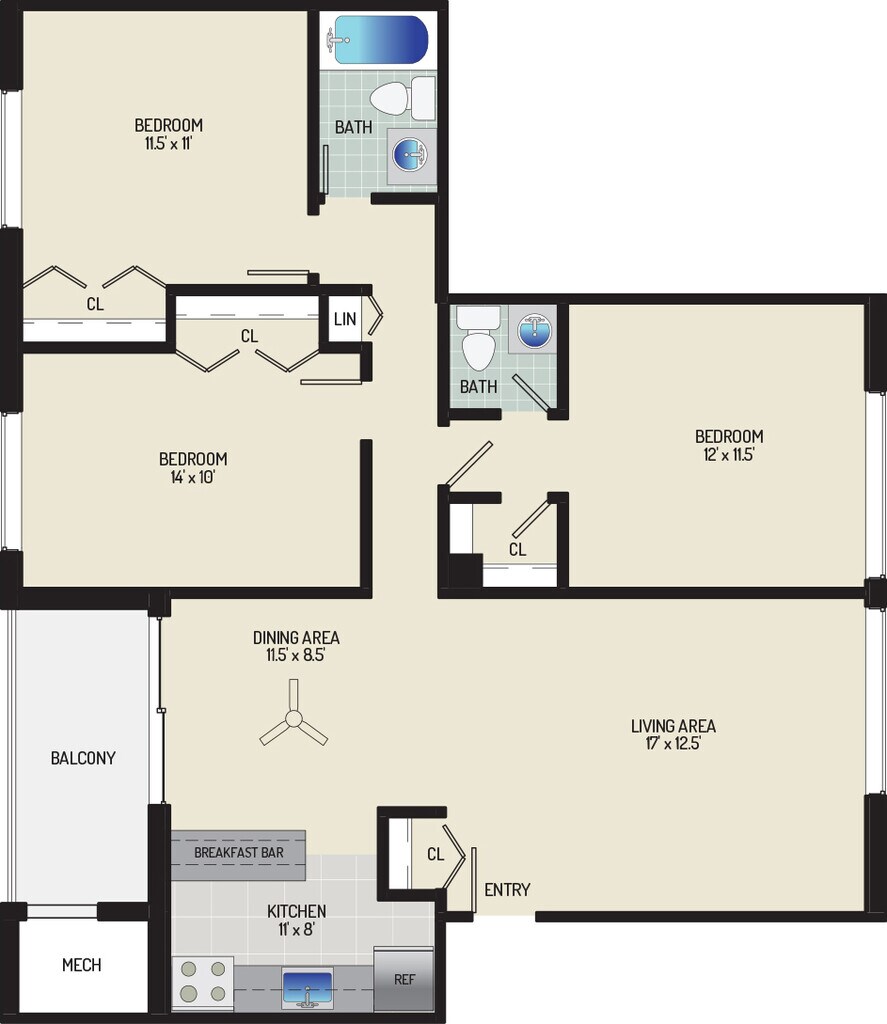 2 Bedrooms + 2 Baths - Plano 3 ![]()
