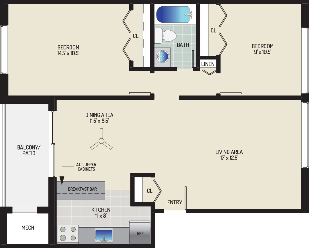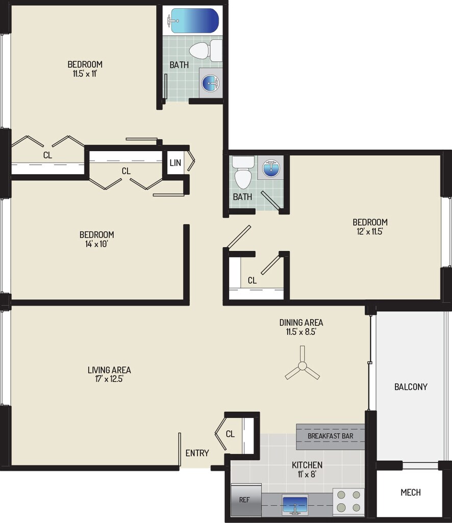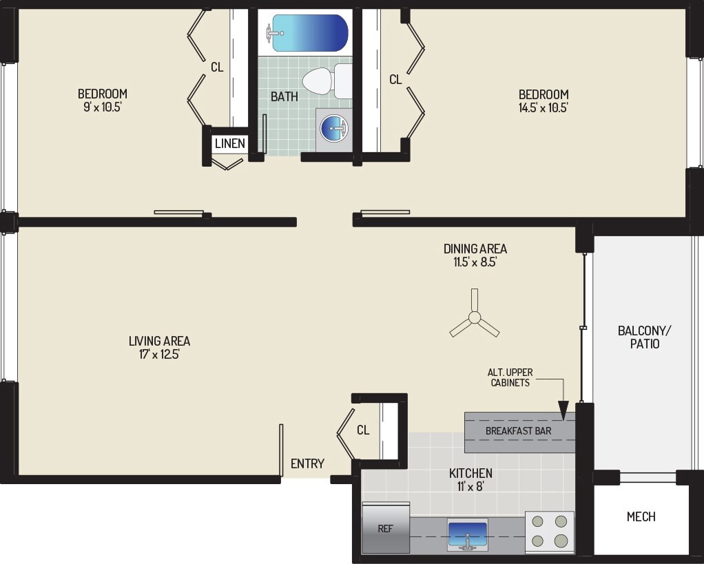 2 Bedrooms + 2 Baths - Plano 4 ![]()