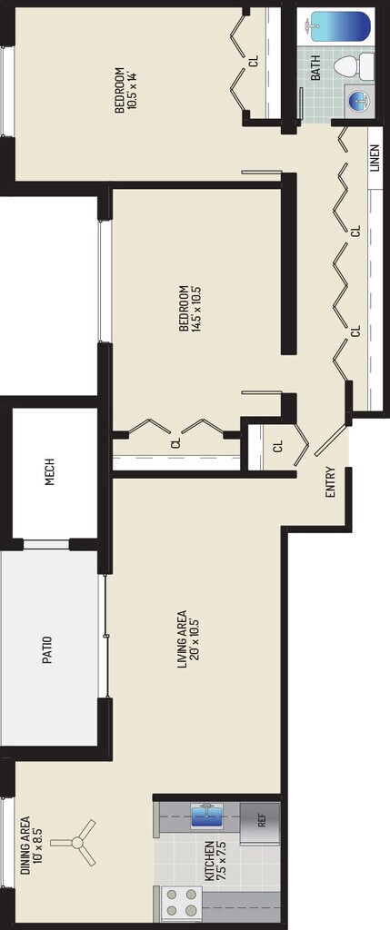2 Bedrooms + 1 Bath - Plano 4 ![]()