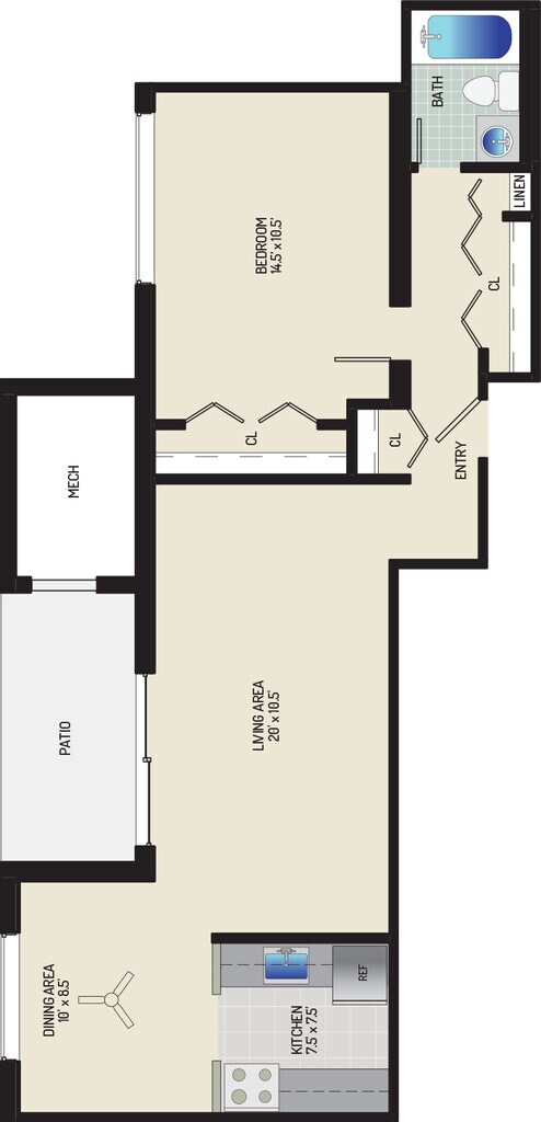 1 Bedroom + 1 Bath - Plano 10 ![]()
