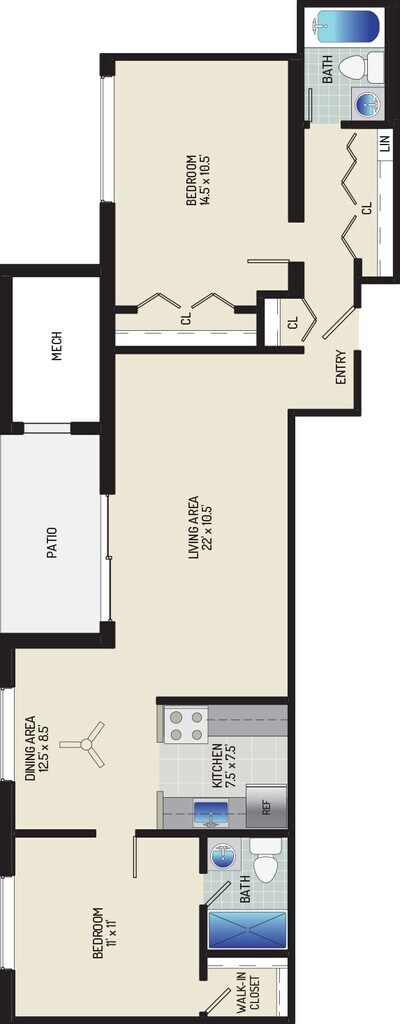 2 Bedrooms + 2 Baths - Plano 5 3 Dormitorios