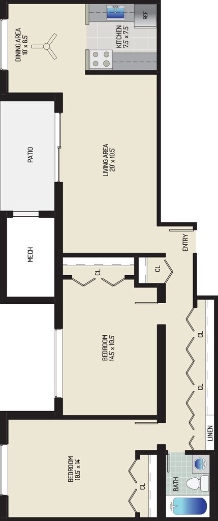 2 Bedrooms + 1 Bath - Plano 5 ![]()