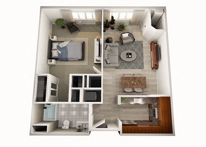 1 Dormitorio, 1 Baño, 707-872 pies²Disponible AhoraGalería del Modelo