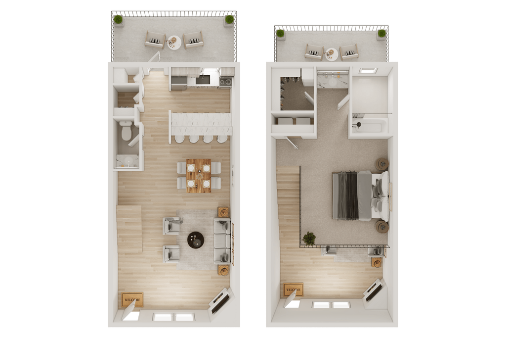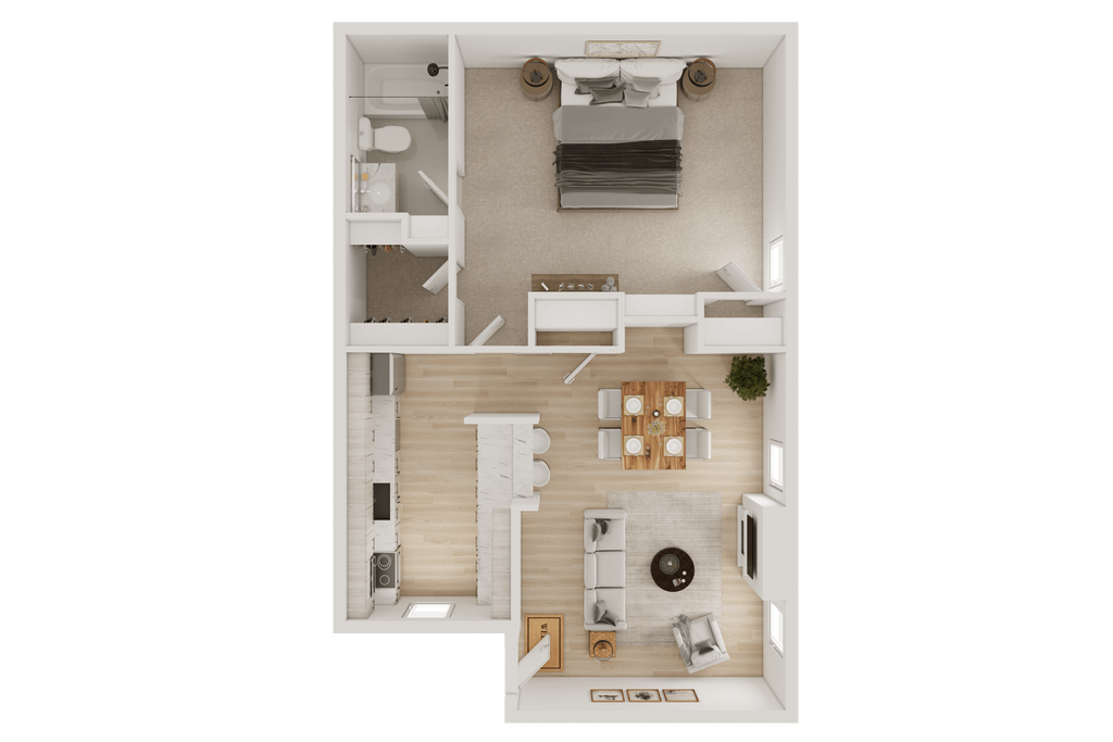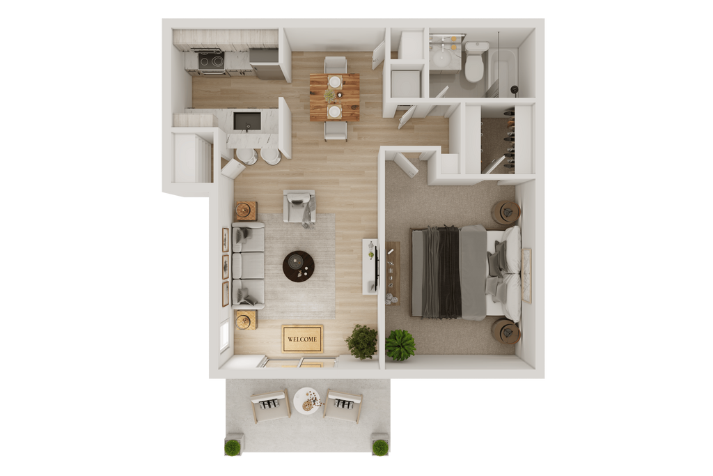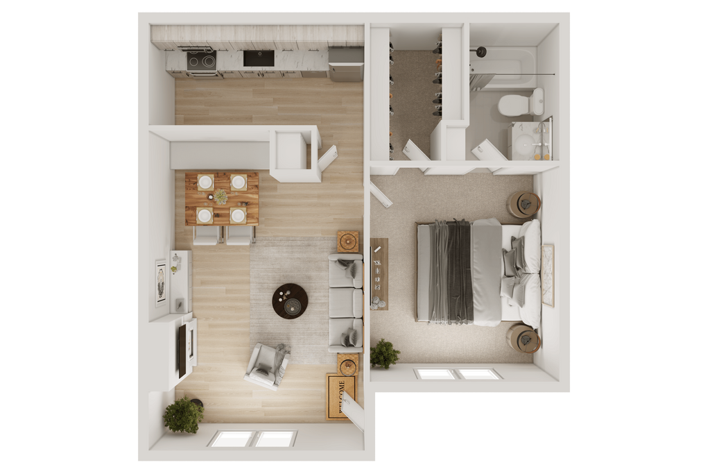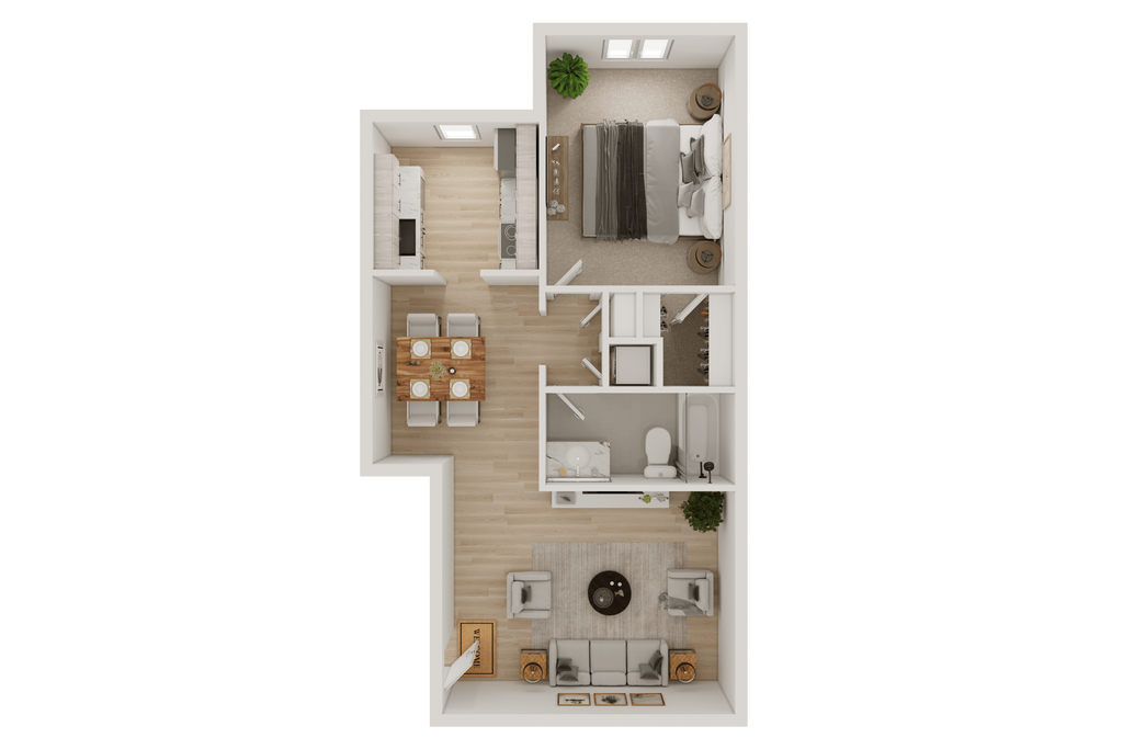 1 Dormitorio, 1 Baño, 665 pies²Disponible AhoraGalería del Modelo
