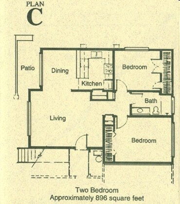 Modelo de apartamento: 2 bedroom 1 bath2 Dormitorios, 1 Baño, 896 sq ftDisponible January 31, 2026![]()