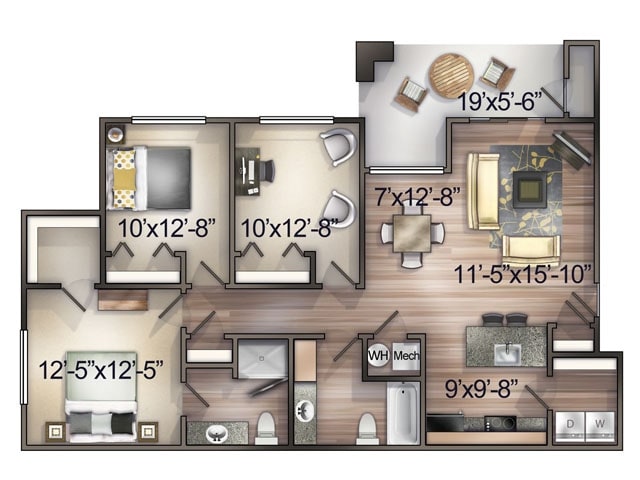 Modelo de apartamento: 3 BedroomDesde $1,3703 Dormitorios, 2 Baños, 1138 sq ftNo Disponible3 Bedroom - Plano 1