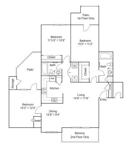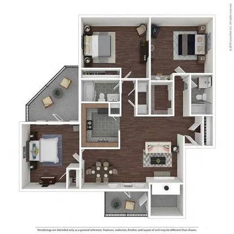 Modelo de apartamento: A3Desde $1,0541 Dormitorio, 1 Baño, 885 sq ftDisponible Ahora![]()