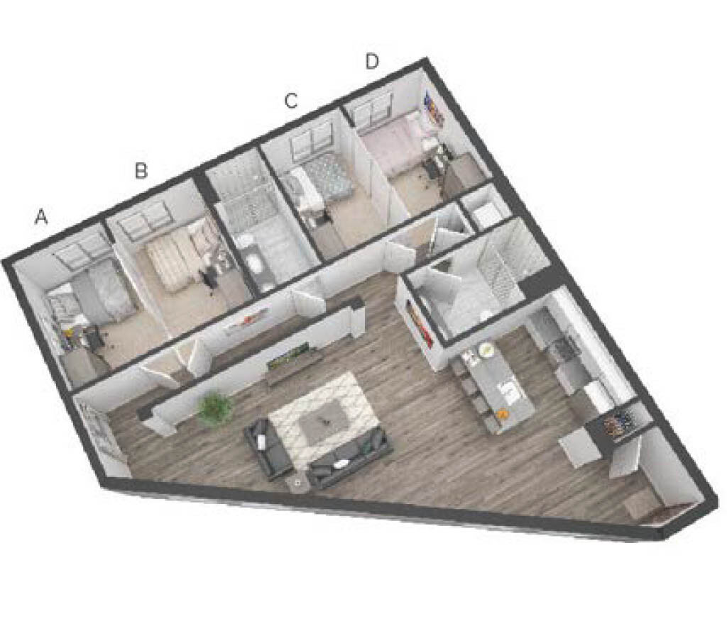 Modelo de apartamento: 4BR/2BA - Highland$1,7684 Dormitorios, 2 Baños, 1044-1305 sq ftDisponible August 17, 2026Los planos son representaciones artísticas. Todas las dimensiones son aproximadas. El producto y las especificaciones reales pueden variar en tamaño o detalle. No todas las características están disponibles en cada vivienda en alquiler. Por favor, consulta con un representante para obtener más detalles.