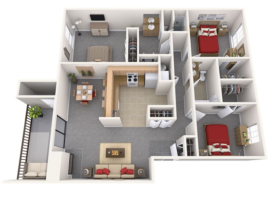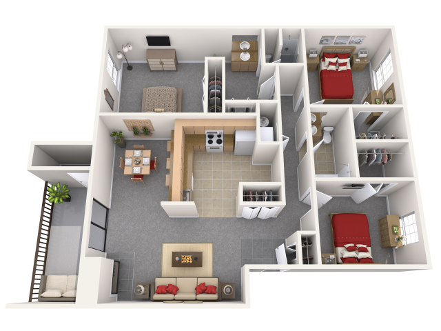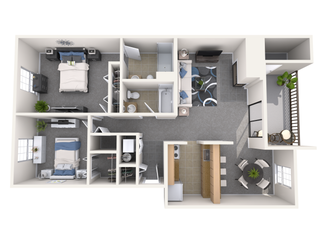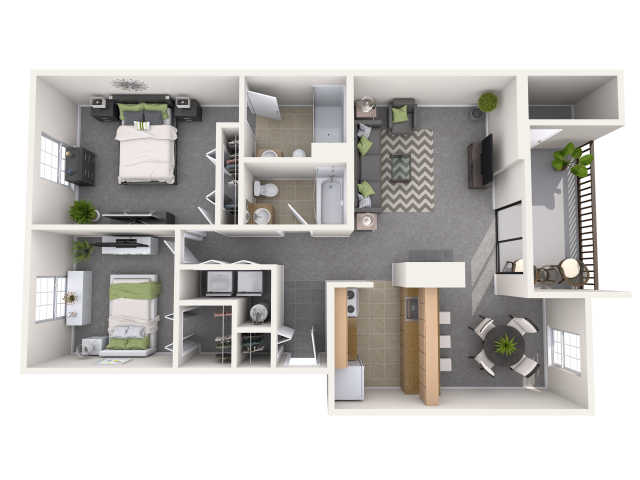 Modelo de apartamento: HartleyDesde $1,2891 Dormitorio, 1 Baño, 851 sq ftDisponible Ahora![]()