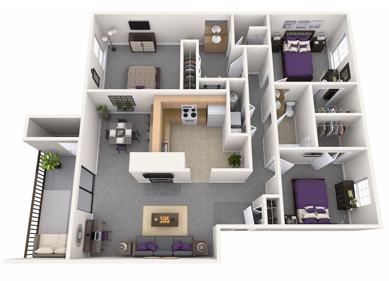 Modelo de apartamento: LaurelDesde $1,3391 Dormitorio, 1 Baño, 921 sq ftDisponible Ahora![]()