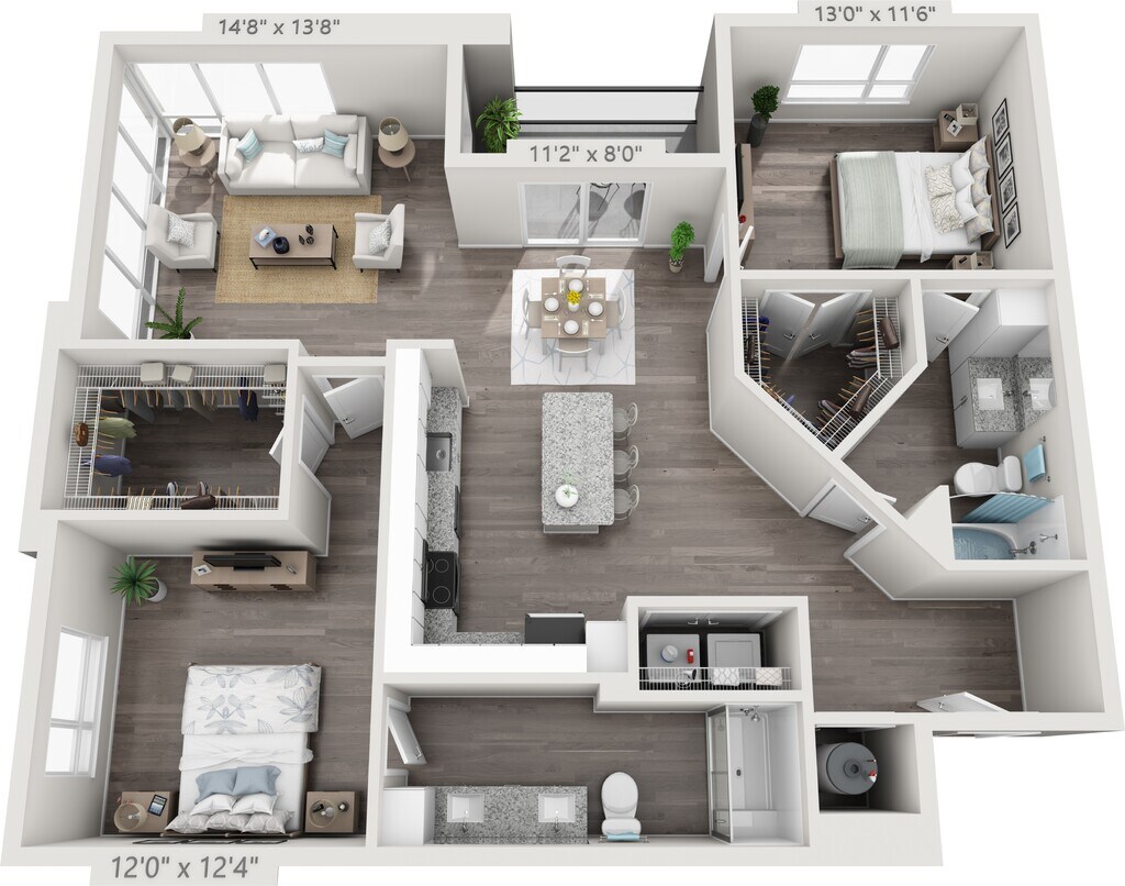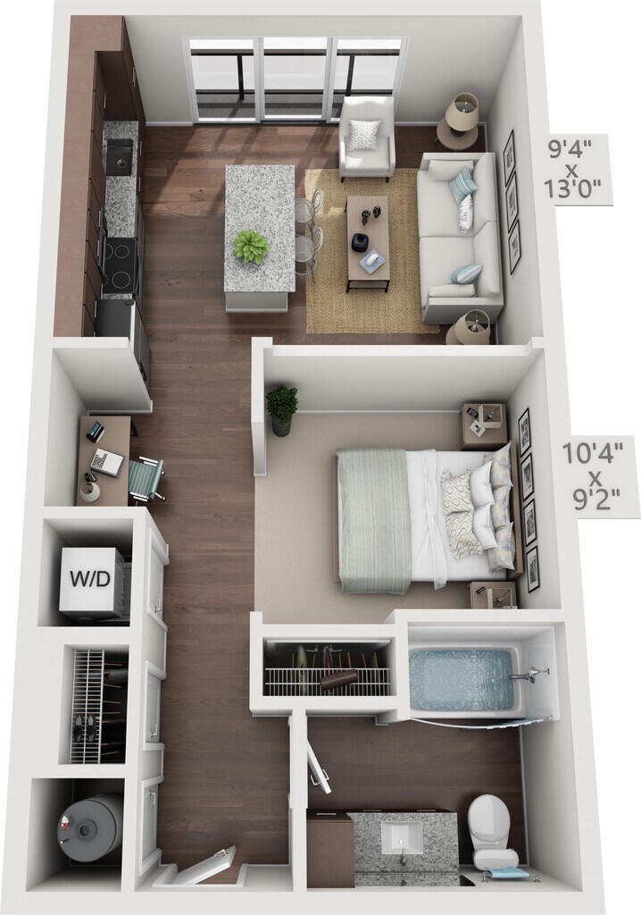1 Dormitorio, 1 Baño, 759 pies²Disponible AhoraEl más grandeEsta opción tiene las unidades más grandes para este modeloGalería del Modelo