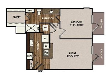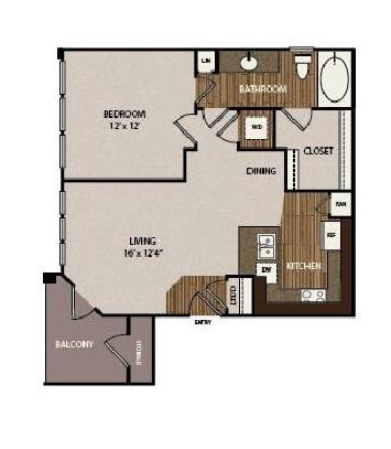 Modelo de apartamento: A21 Dormitorio, 1 Baño, 661 sq ftNo Disponible![]()
