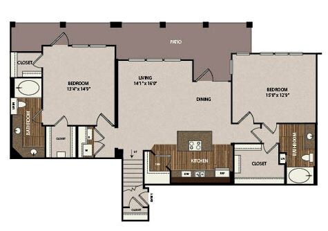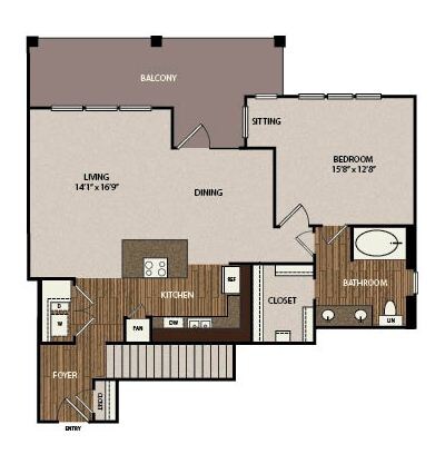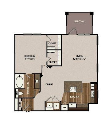 1 Dormitorio, 1 Baño, 1034 pies²El más grandeEsta opción tiene las unidades más grandes para este modeloGalería del Modelo