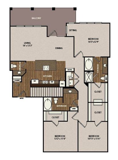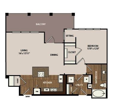 Modelo de apartamento: A5A1 Dormitorio, 1 Baño, 832 sq ftNo Disponible![]()