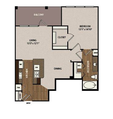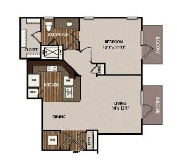 Modelo de apartamento: A71 Dormitorio, 1 Baño, 884 sq ftNo Disponible![]()