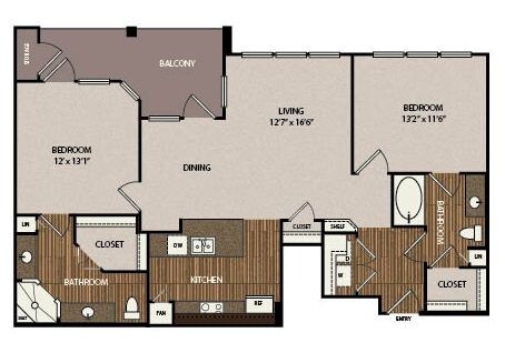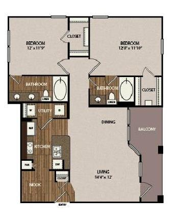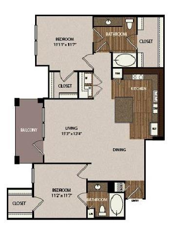 2 Dormitorios, 2 Baños, 1064 pies²Galería del Modelo