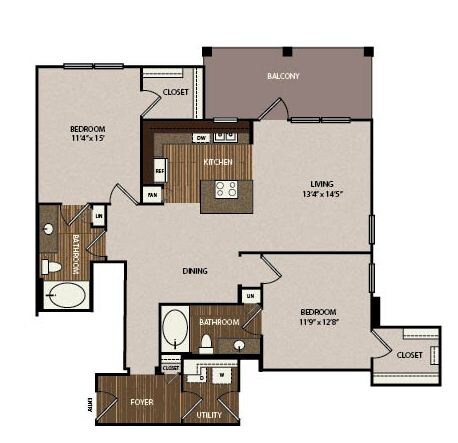 Modelo de apartamento: A4B1 Dormitorio, 1 Baño, 959 sq ftNo Disponible![]()