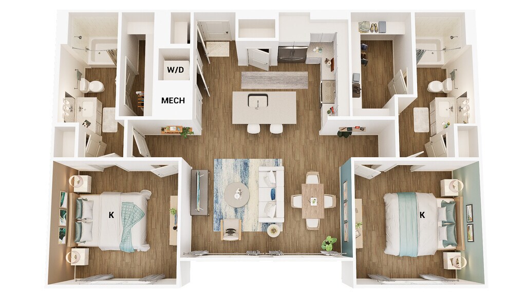 Modelo de apartamento: B1Desde $2,0552 Dormitorios, 2 Baños, 1078 sq ftDisponible Ahora![]()