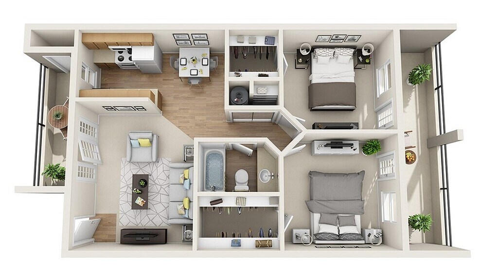 2 Dormitorios, 1 Baño, 759 pies²Galería del Modelo