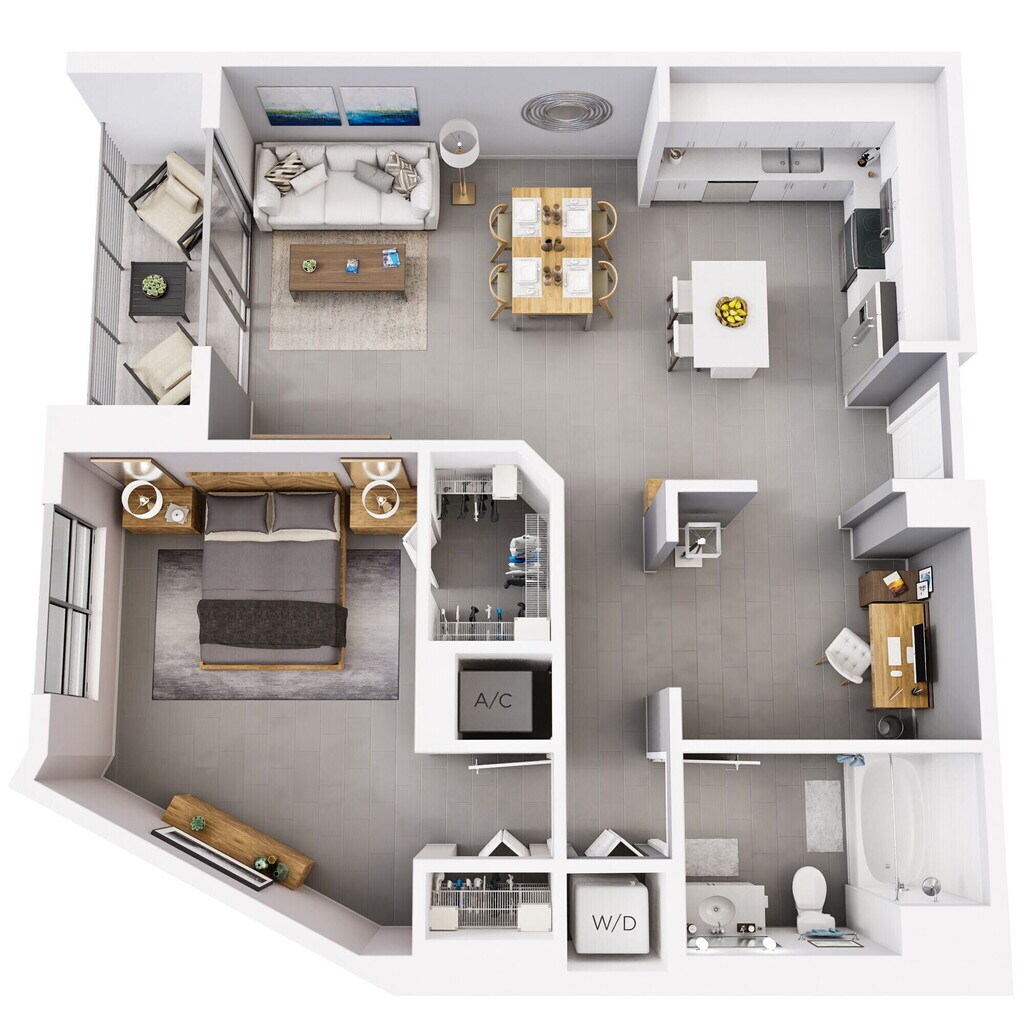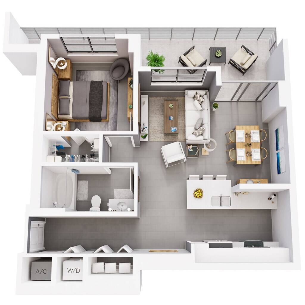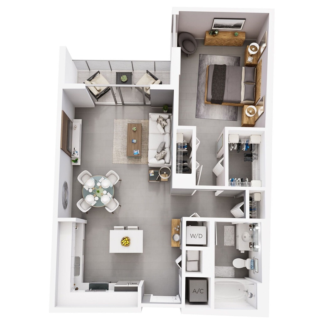 Modelo de apartamento: A1Desde $2,3991 Dormitorio, 1 Baño, 741 sq ftDisponible Ahora![]()