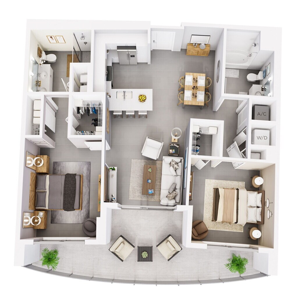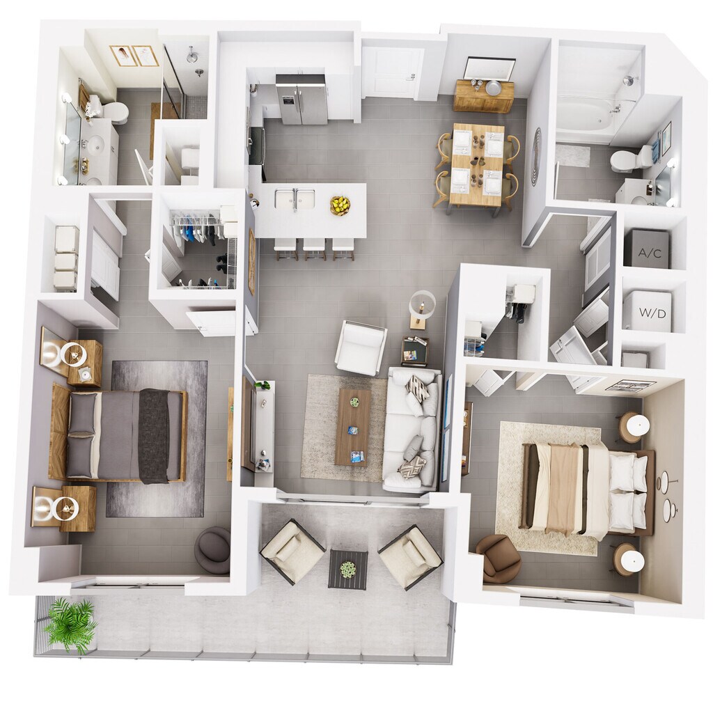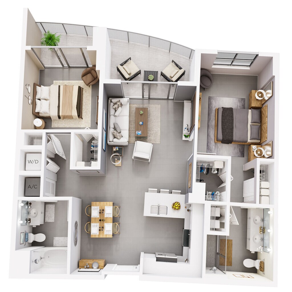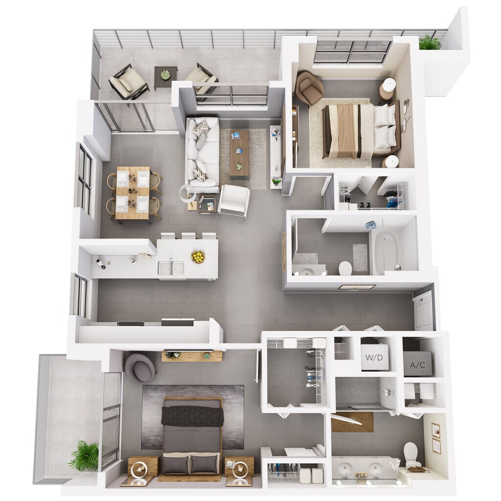 Modelo de apartamento: A1Desde $2,3991 Dormitorio, 1 Baño, 741 sq ftDisponible Ahora![]()