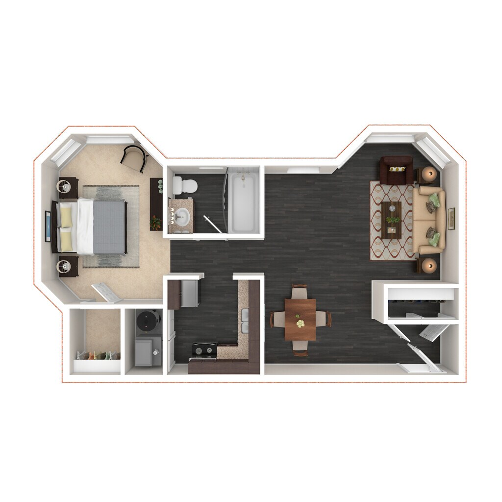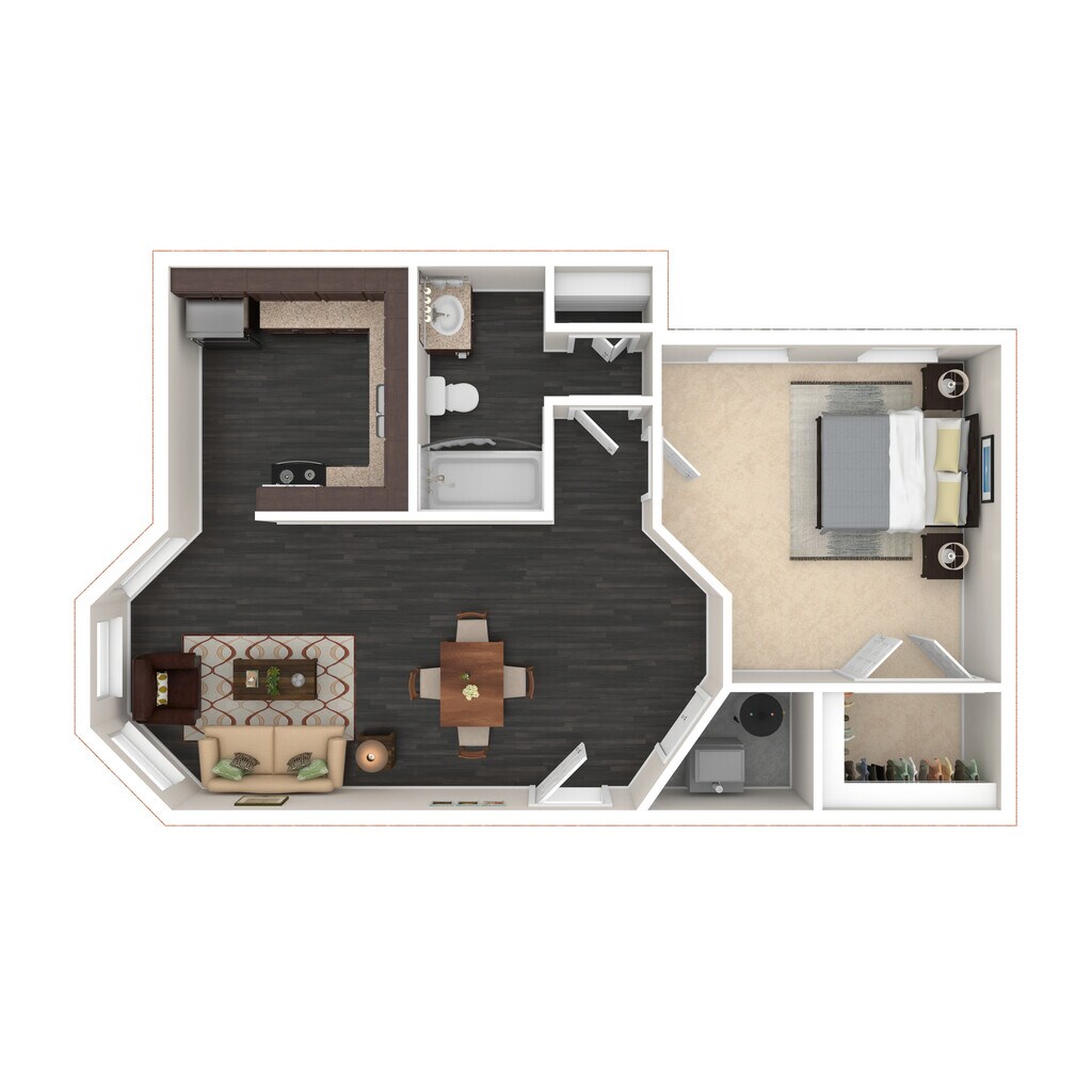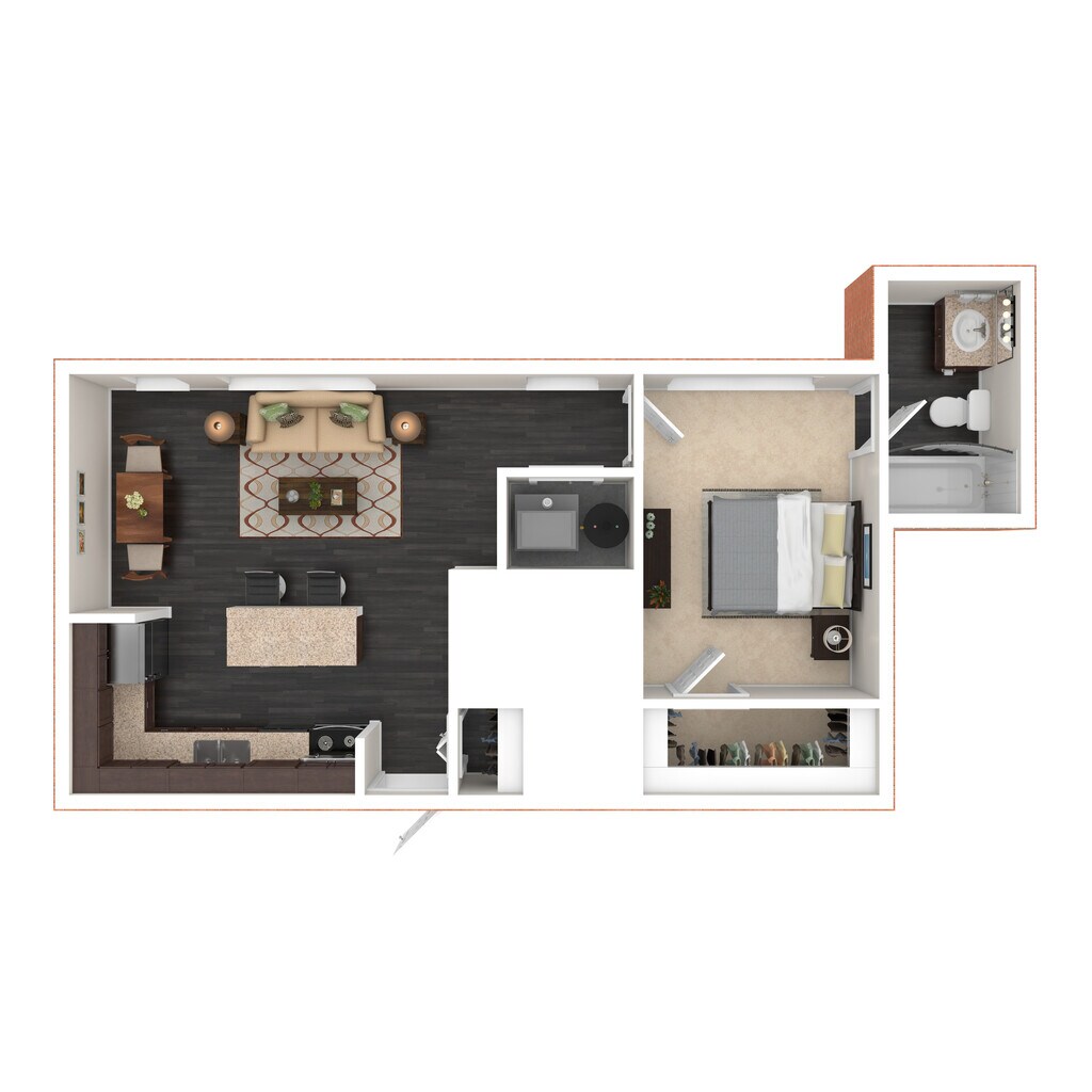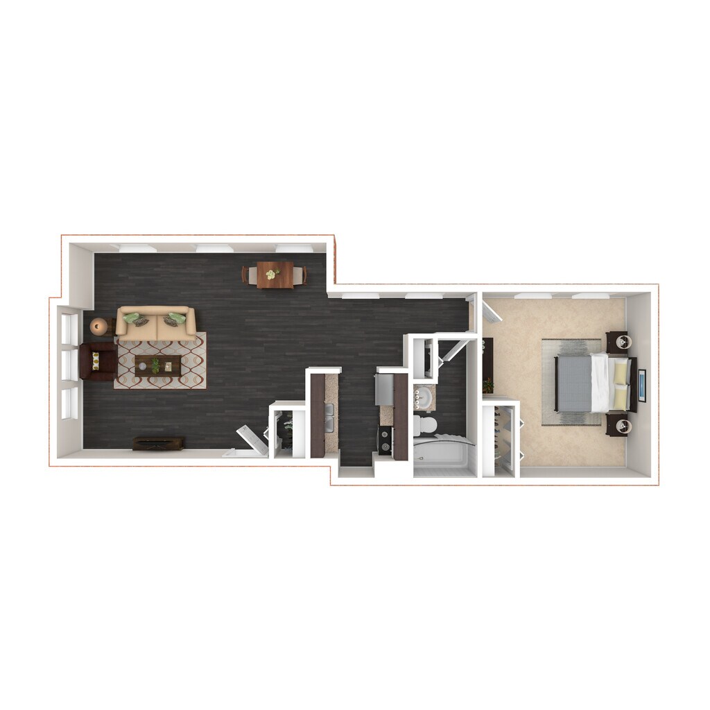 Estudio, 1 Baño, 638 pies²Disponible Mar 24El más grandeEsta opción tiene las unidades más grandes para este modeloGalería del Modelo