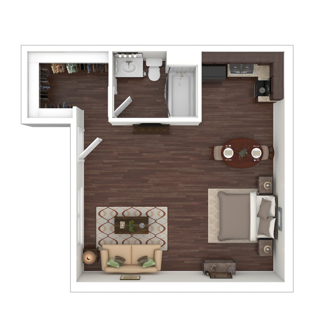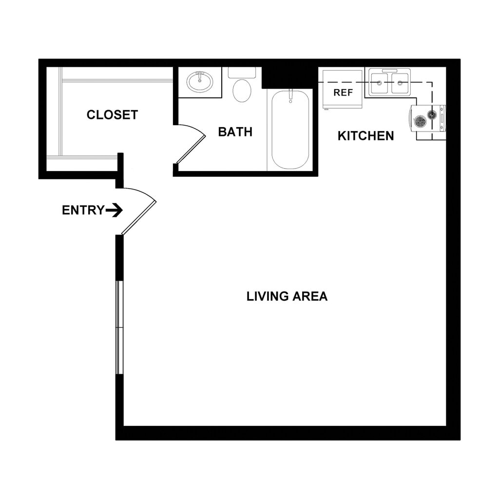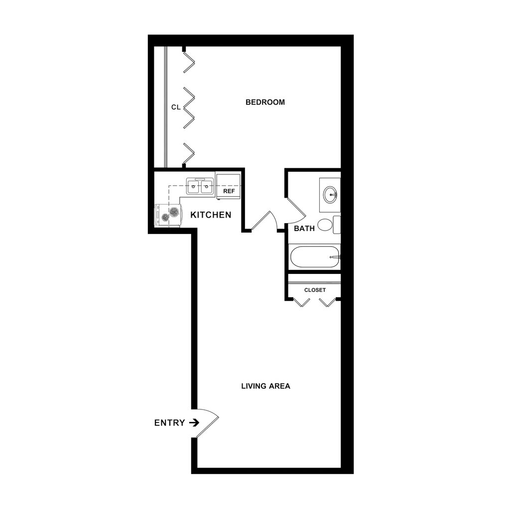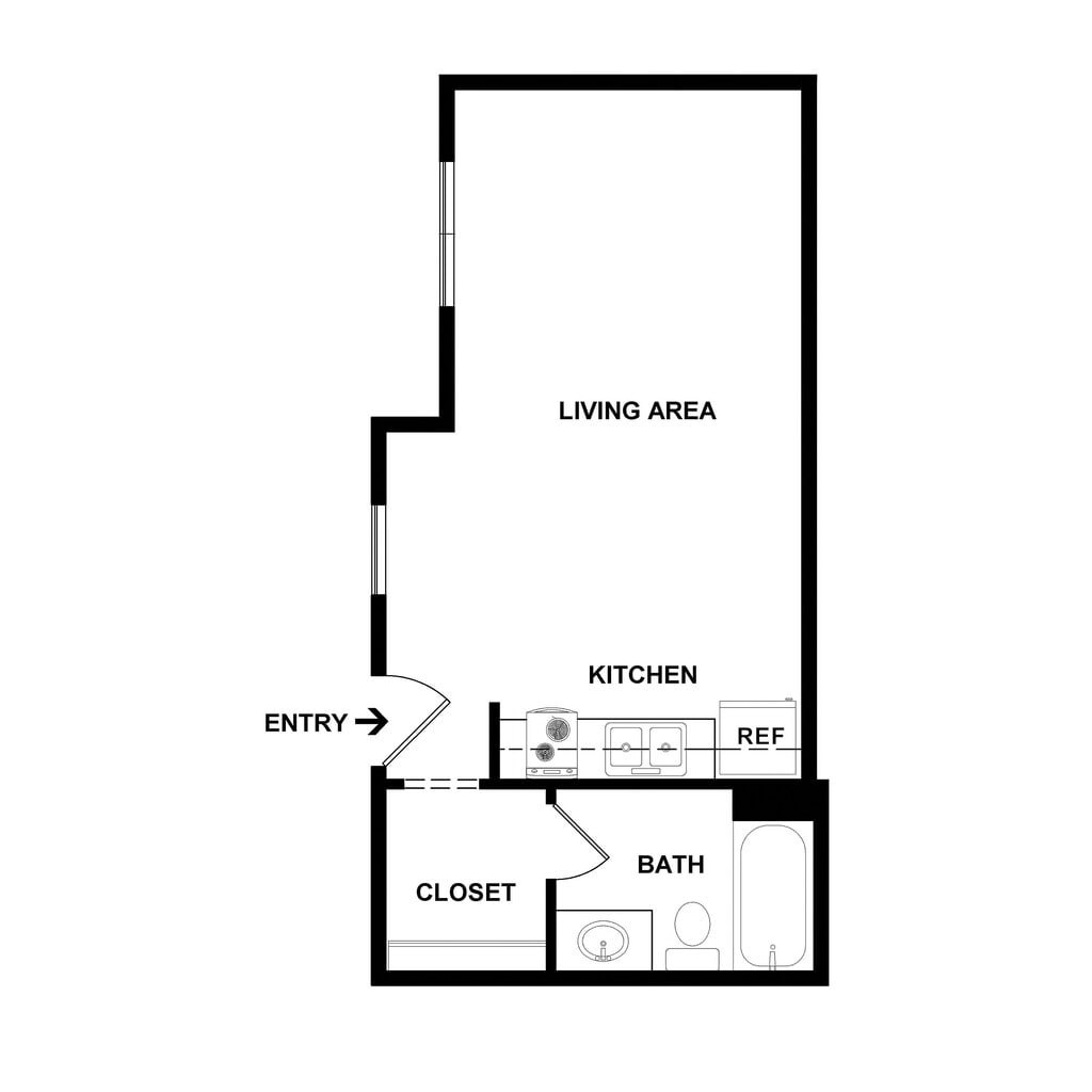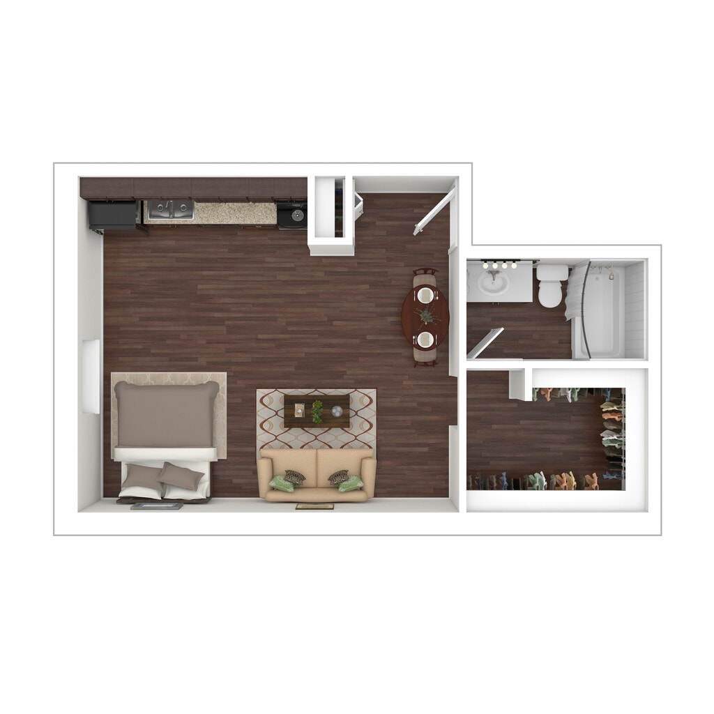 Estudio, 1 Baño, 565 pies²Disponible AhoraGalería del Modelo