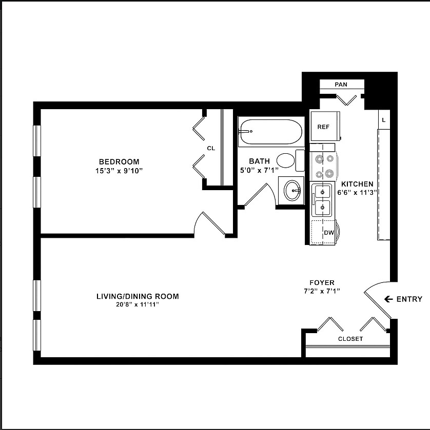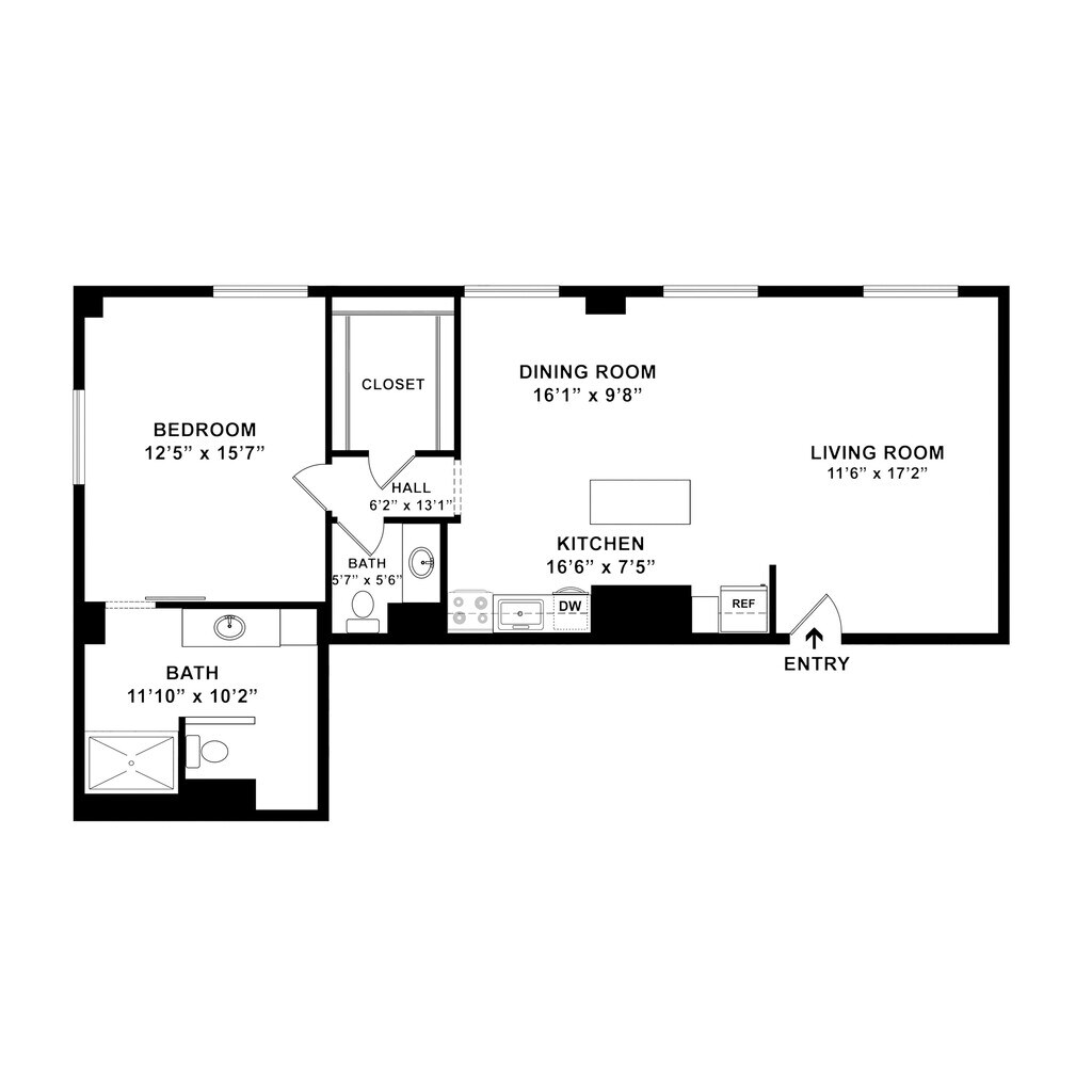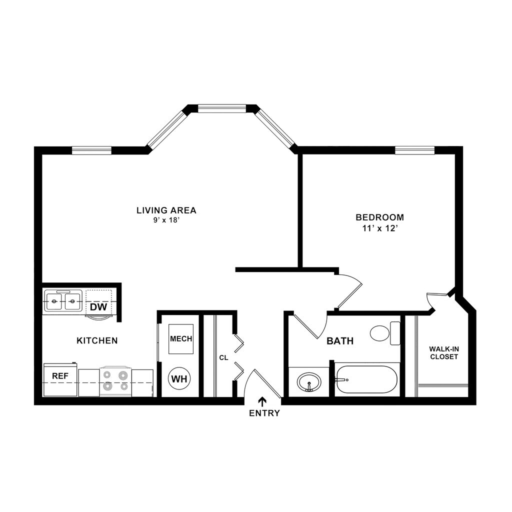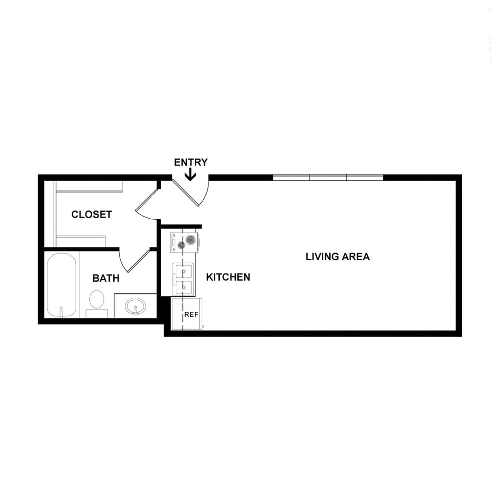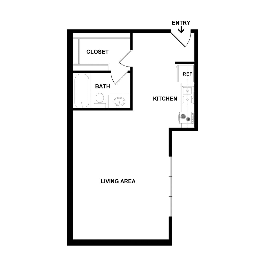Estudio, 1 Baño, 565 pies²Disponible AhoraGalería del Modelo