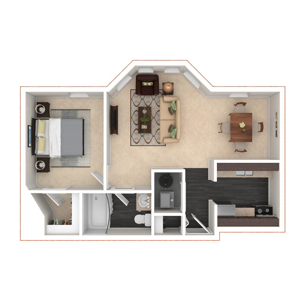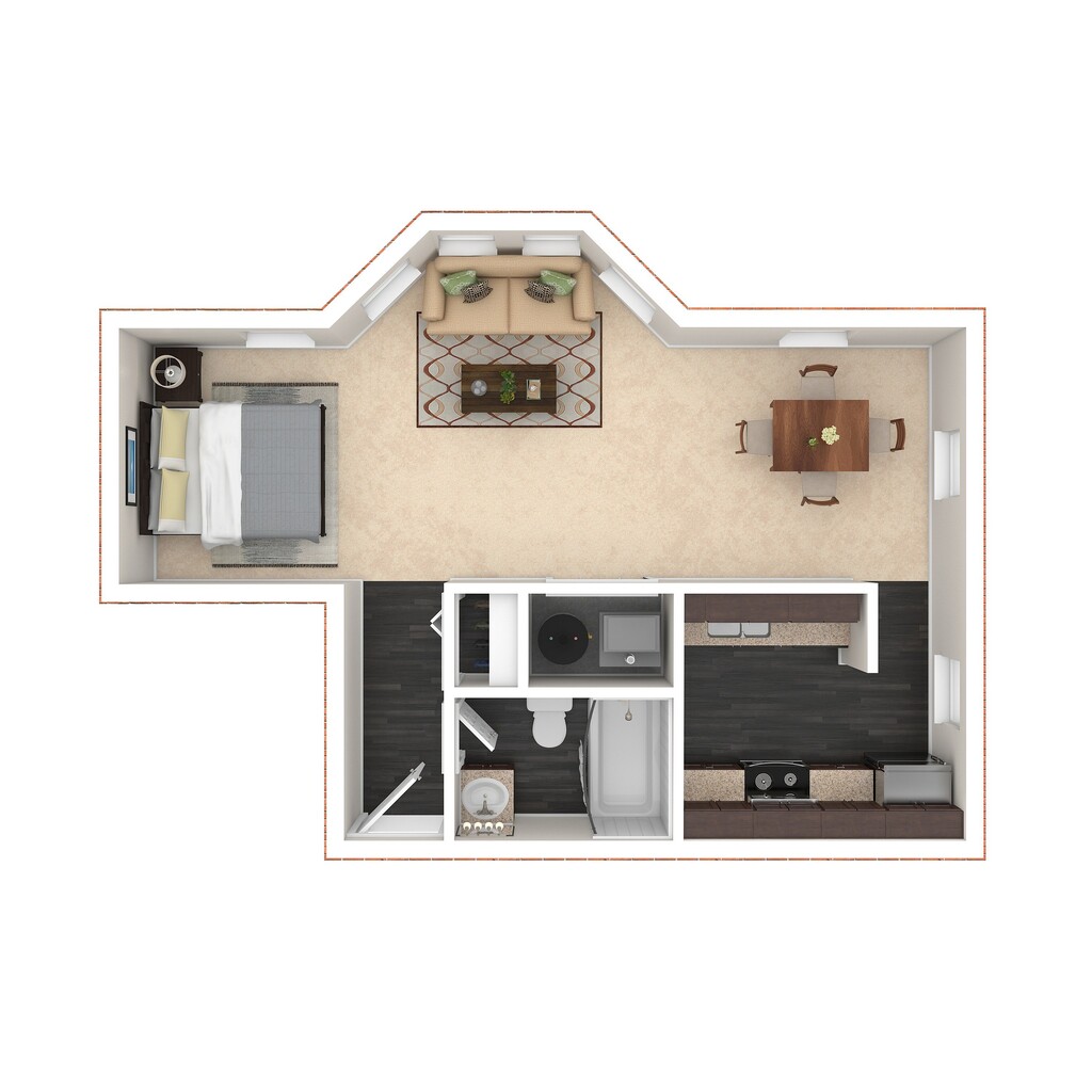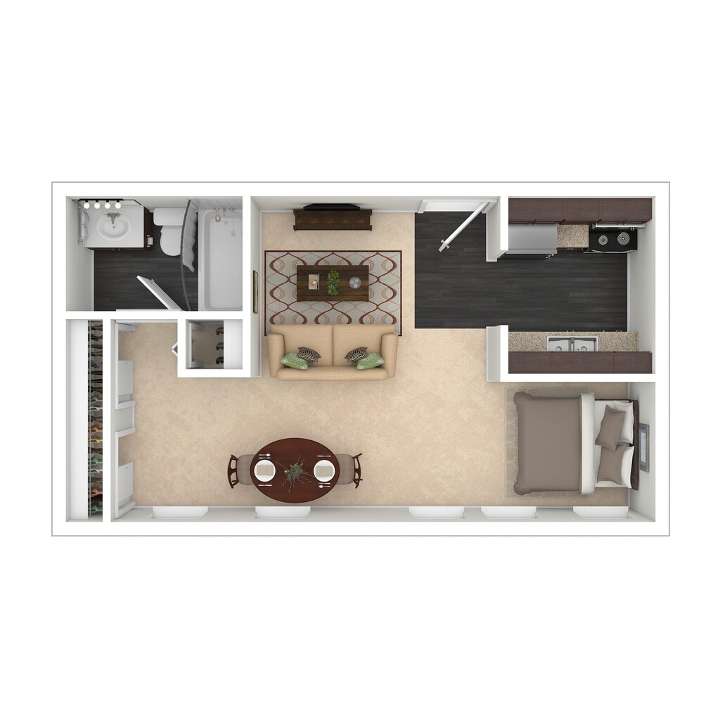 Estudio, 1 Baño, 516 pies²Disponible AhoraGalería del Modelo