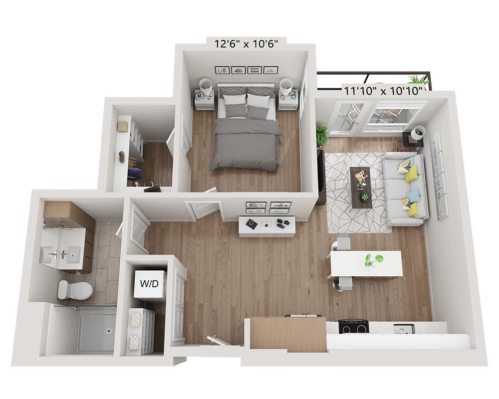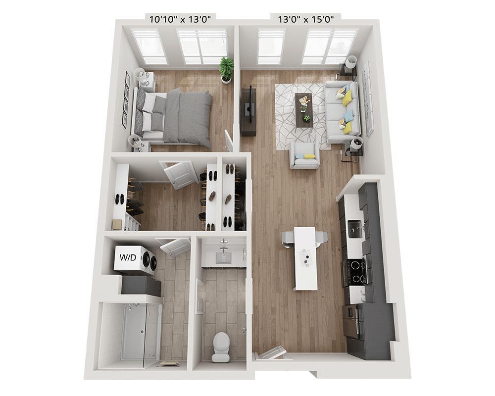 Estudio, 1 Baño, 540-543 pies²Disponible AhoraEl más grandeEsta opción tiene las unidades más grandes para este modeloGalería del Modelo