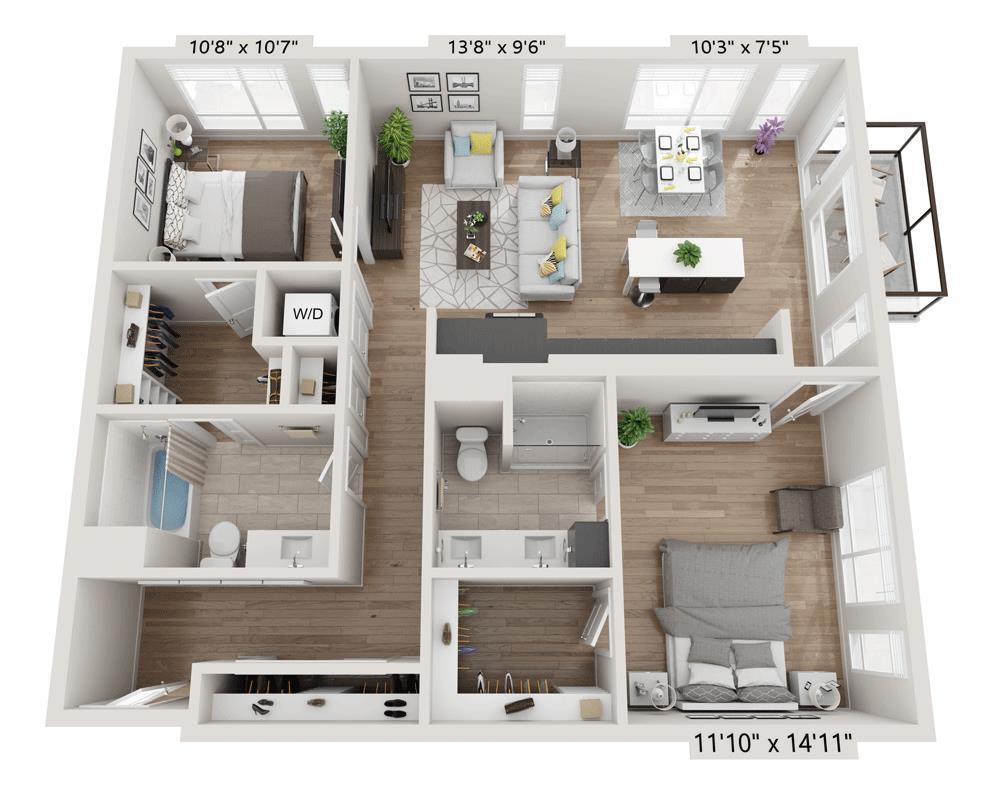 Estudio, 1 Baño, 540-543 pies²Precio Mensual TotalDisponible AhoraEl más grandeEsta opción tiene las unidades más grandes para este modeloGalería del Modelo