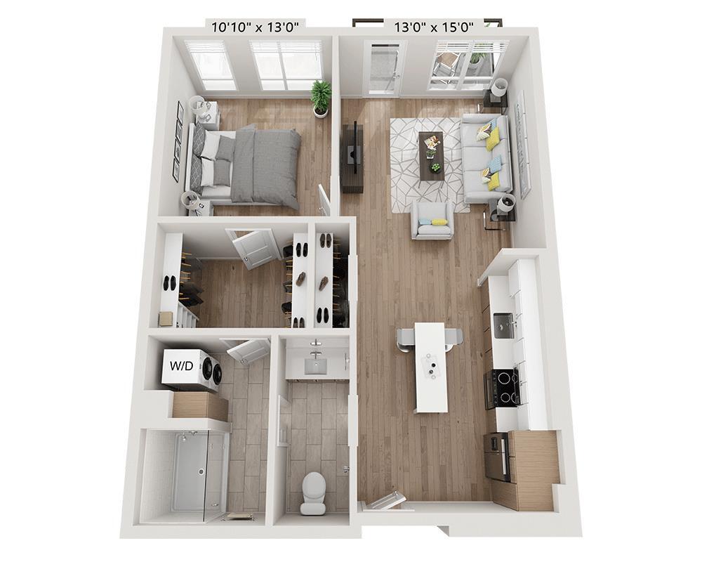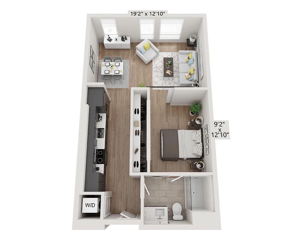 Estudio, 1 Baño, 507-521 pies²Precio Mensual TotalDisponible AhoraEl más baratoEsta opción tiene los precios más bajos para este modeloGalería del Modelo