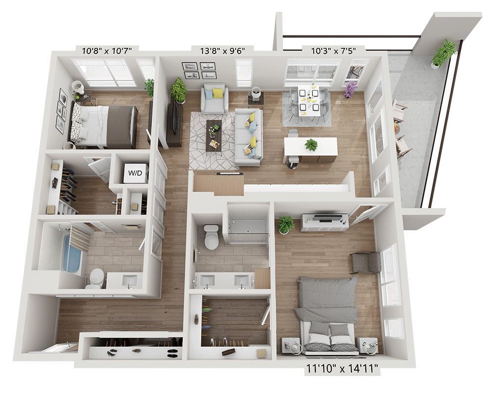 En Cirrus Apartments, todo lo que amas de Denver estás a solo unos minutos de tu puerta. Las características excepcionales del complejo incluyen una terraza en la azotea, piscina y spa, un gimnasio de última generación y un parque para perros privado. Las características del adolescente incluyen techos de madera a la vista, encimeras de cuarzo, electrodomésticos de acero inoxidable, lavadoras y secadoras y balcones privados con vista al centro y a la montaña.