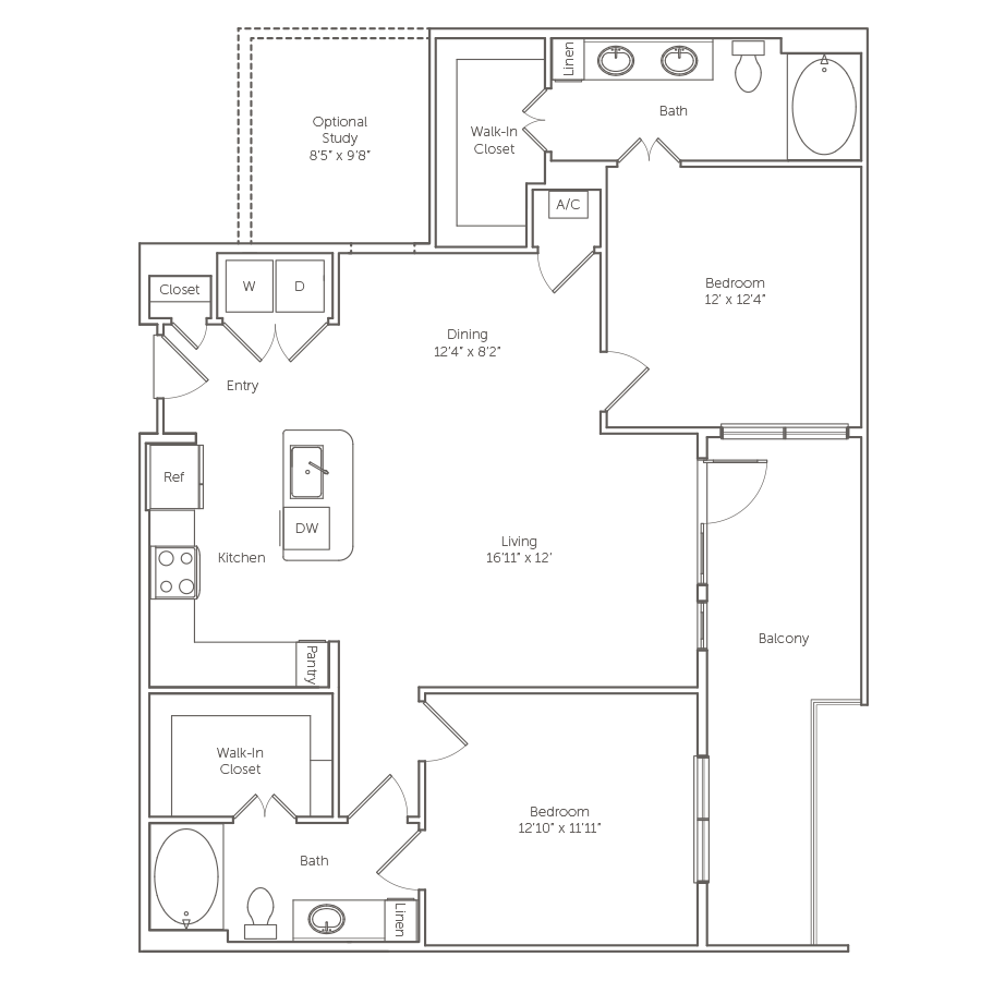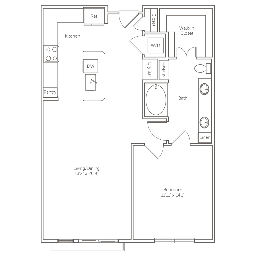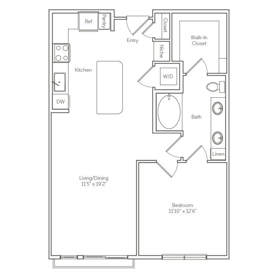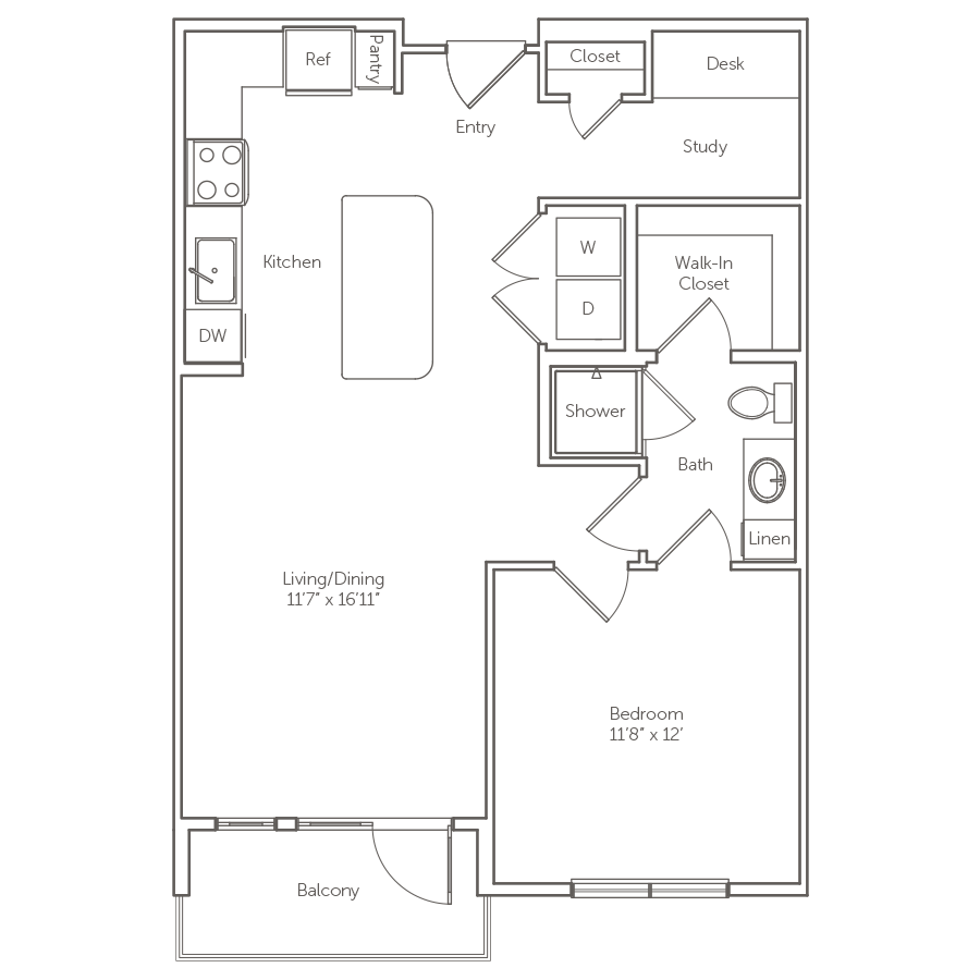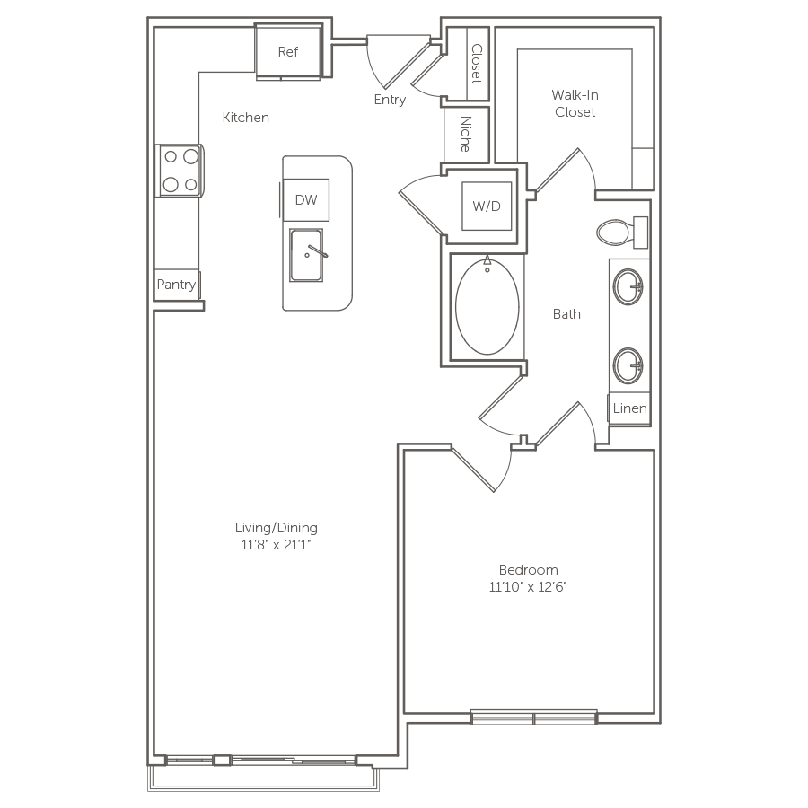 Modelo de apartamento: A1Desde $1,2691 Dormitorio, 1 Baño, 603-631 sq ftDisponible November 30, 2025![]()