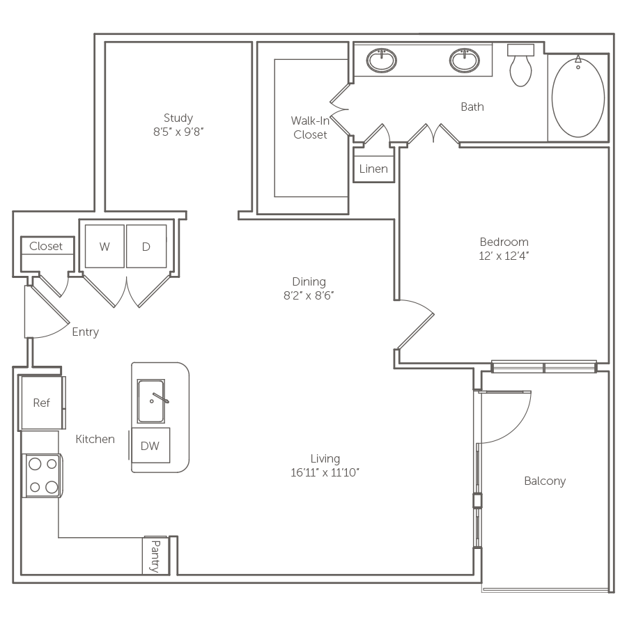 1 Dormitorio, 1 Baño, 777-783 pies²Disponible AhoraGalería del Modelo