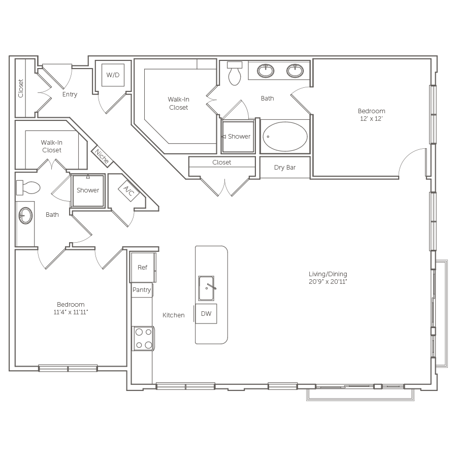 Modelo de apartamento: A5Desde $1,4801 Dormitorio, 1 Baño, 917-924 sq ftDisponible December 20, 2025![]()
