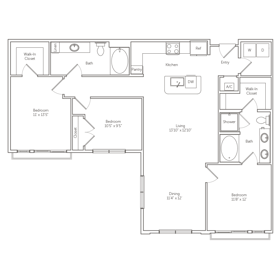 Modelo de apartamento: A3Desde $1,3931 Dormitorio, 1 Baño, 804-806 sq ftDisponible December 19, 2025![]()