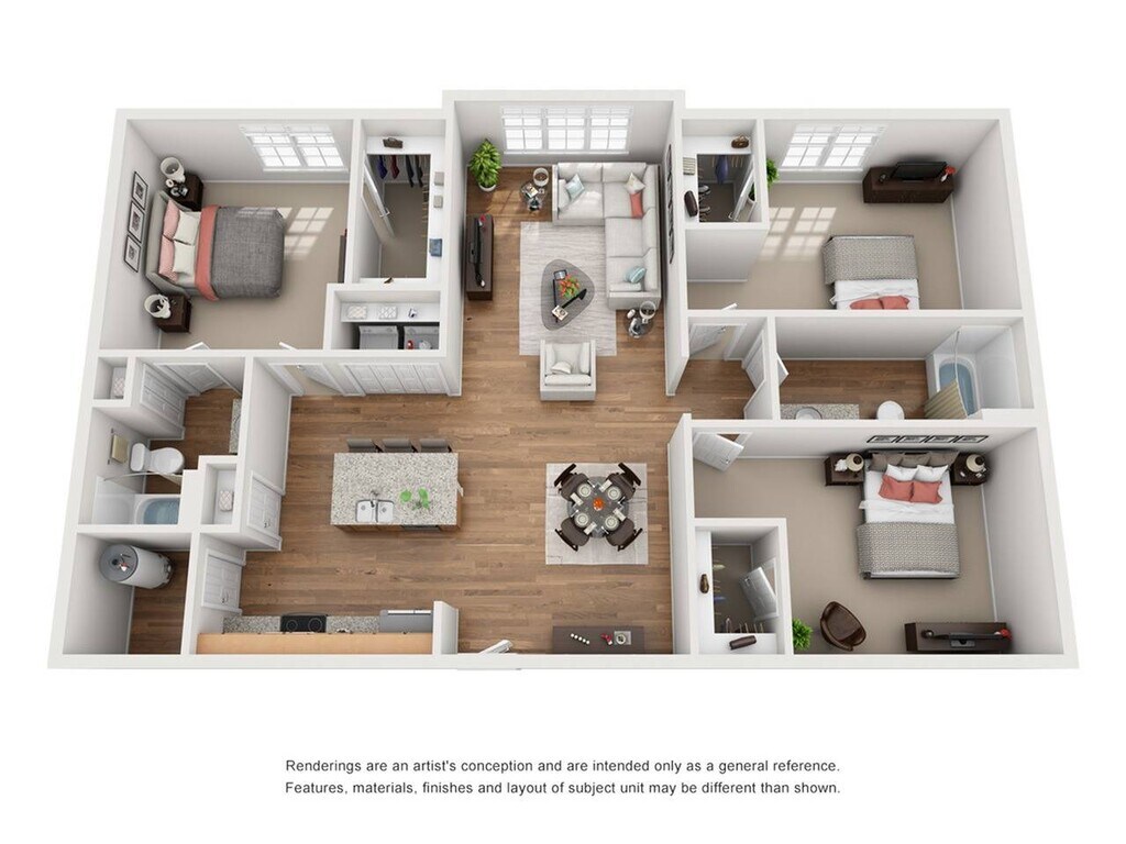 Modelo de apartamento: A4Desde $1,6551 Dormitorio, 1 Baño, 859 sq ftDisponible Ahora![]()